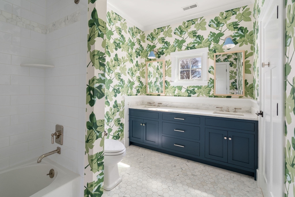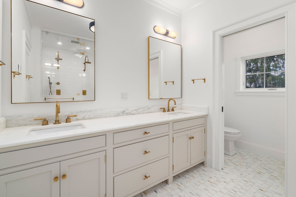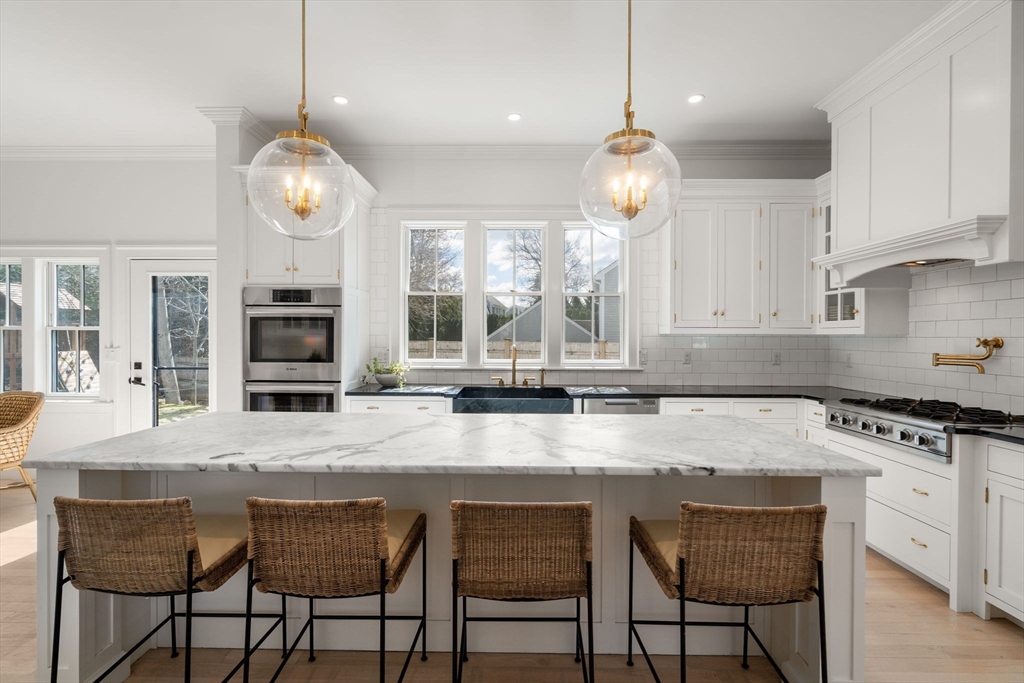 Fabulous custom home with Waterworks fixtures, designer wallpapers, lighting & hardware. Great opportunity to enjoy luxurious living in a coveted double cul-de-sac neighborhood close to new Hardy School, Morses Pond, Fells Market & exceptional restaurants/ shops. Well-designed space, featuring 10-foot ceilings, gourmet chef kitchen w/walk-in pantry & marble counters leads to beautiful dining & living room w/ exceptional finishes. FP w/ gorgeous marble tile. Stunning primary suite w/ new spa like bath w/steam shower, double walk-in closets. 4 additional light filled bedrooms provide generous space & comfortable ambiance & 2 full baths. Lower level includes spacious family/playroom, gym, plenty of storage, plus full bathroom. The house also has a two-car garage for convenient secure parking. Outside, enjoy spectacular private gardens & sunny stone patio, perfect for outdoor entertaining w/ family & friends. One of Wellesley's finest homes.