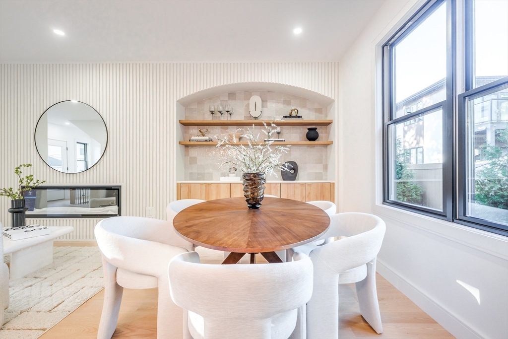 Elegant new construction 4 bed, 3.5 bath townhome with 2-car garage parking and private yard. Thoughtfully designed with high-end finishes throughout, this home blends modern style with everyday function. The open-concept main level features a chef’s kitchen with integrated appliances, custom cabinetry and built-ins, a sleek linear fireplace, and striking arch details, along with a stylish wallpapered half bath and custom built-in mudroom. Upstairs, find 4 spacious en-suite bedrooms including a luxurious primary suite with walk-in closet and spa-inspired bath, plus laundry. The finished lower level offers versatile space ideal for a gym, media room, or playroom. Built to live like a single-family, this property provides comfort and convenience in a prime location near parks, the Charles River trail, neighborhood shops and restaurants, and with easy access to Watertown and Cambridge.