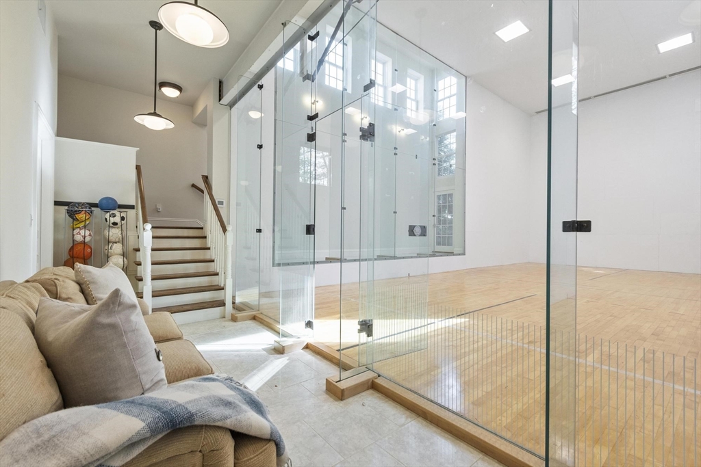 Exceptional, custom-built waterfront retreat on Todd Pond offers refined luxury for both relaxed living and elegant entertaining. With 6 bedrooms and 6+ baths, the home showcases sweeping water views, bluestone terraces, hot tub, lighted tennis court, squash court, and landscaped grounds creating a private, resort-like setting. The chef’s kitchen features a large island, Miele appliances, 2 dishwashers, double ovens, wine refrigeration, and integrated coffee system, opening to a sunlit breakfast area adjacent to the family room with gas fireplace. Formal living and dining rooms, private study, and a serene first-floor primary suite complete the main level. Upstairs offers 3 en-suite bedrooms, while the lower level includes recreation room, kitchenette, 2 en-suite bedrooms, exercise room, wine room, and workshop. Sidewalks to shops, restaurants, commuter rail, and nearby trail access. This extraordinary offering combines peaceful waterfront living with convenient access to Boston.