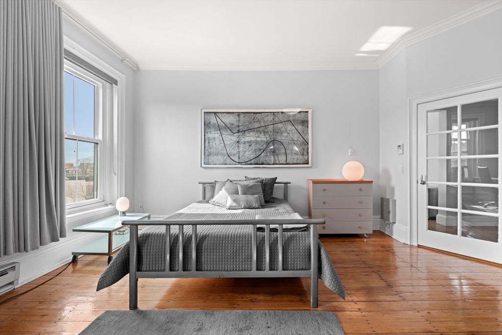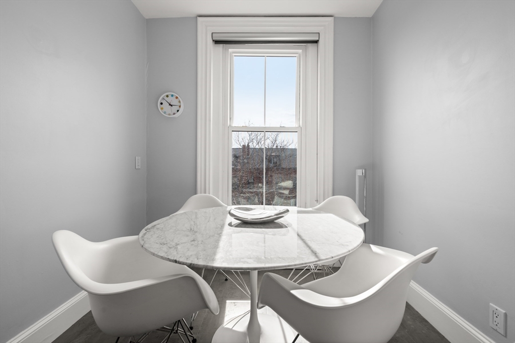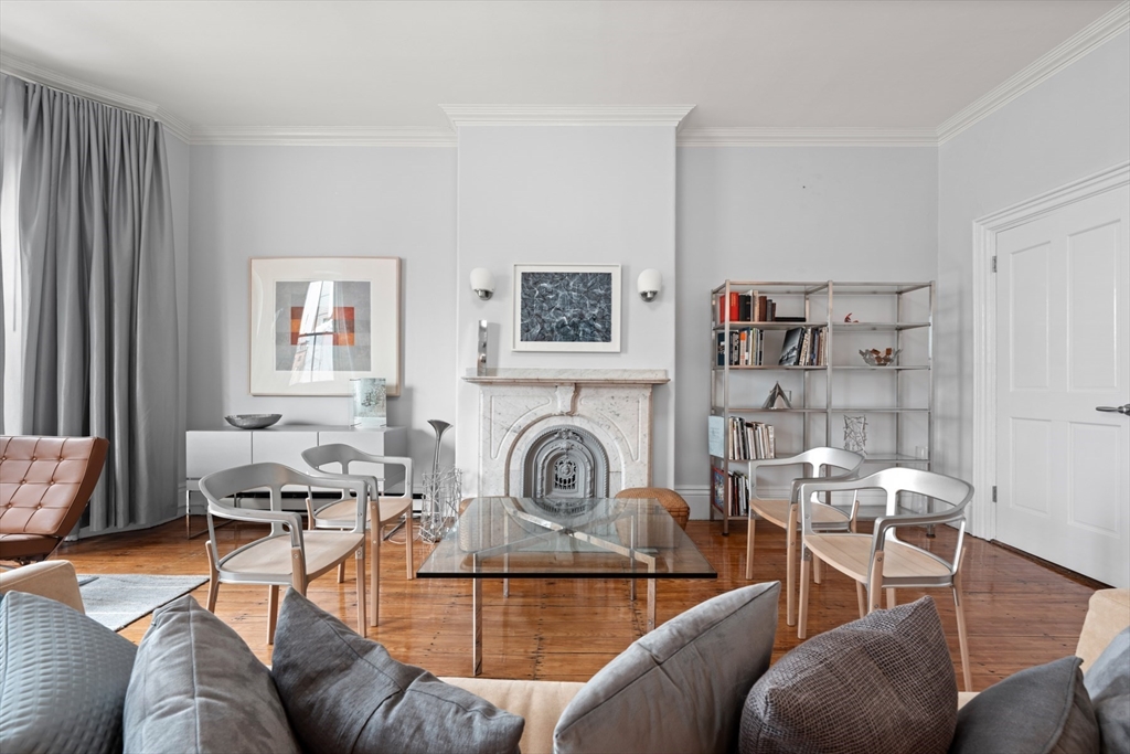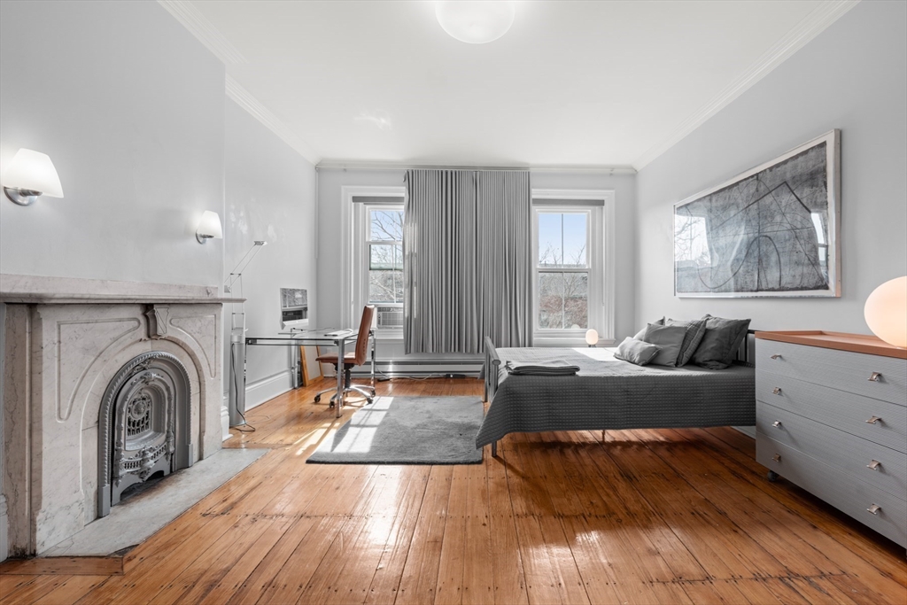 Grand scale South End two bedroom home located on historic Chester Square. Ideal for entertaining with over 1,000 square feet of single level living and 10' ceilings. Original Victorian details throughout; beautifully carved marble mantels, carved wood casings and natural wide pine floors. The open living room is sunny and bright with large windows and views of the square. The spacious primary bedroom has great closet space and easily handles a king size bed and home office area. The eat-in kitchen is modern and sleek with great storage and updated appliances. Ideal second bedroom for guest and a home office. The bathroom has a flexible layout with an oversized shower.