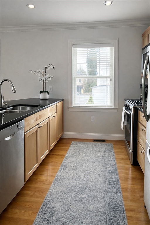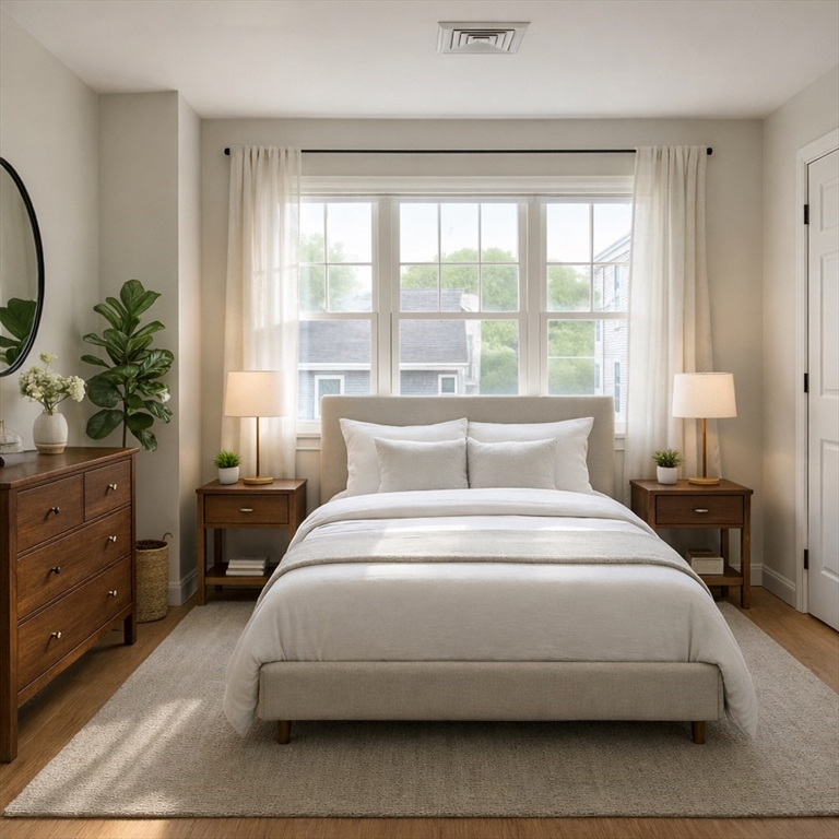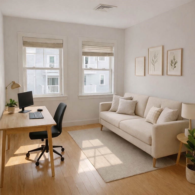 Bright 2007-built 2-bedroom, 2.5-bath townhouse near Larz Anderson Park with private 2-car garage. Freshly painted, south-facing with abundant natural light and tree-filled views. Features include newly refinished hardwood floors, gas fireplace, and dual-zone AC. Kitchen with granite countertops, stainless steel appliances, gas range, and breakfast bar. In-unit laundry near bedrooms. Private outdoor space for gardening or entertaining, plus basement and attic storage space. Convenient location with easy access to Longwood Medical Area, Cambridge, and Boston, with bus connections to Green and Orange Lines, Roland Hayes School. Rare opportunity to own a modern townhouse with private 2-car garage in South Brookline. Listing photos are AI staged