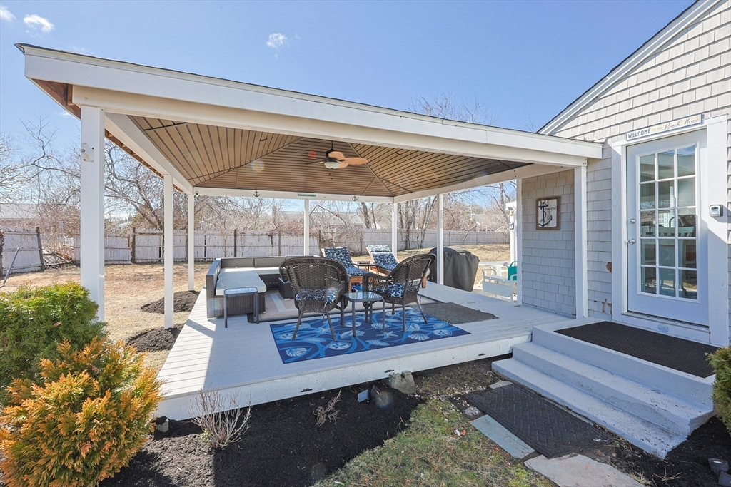 Welcome to your turnkey Cape Cod retreat! Just moments from Seagull Beach, this charming three-bedroom ranch blends timeless appeal with modern updates. The bright, inviting living area features a cozy fireplace, while the updated kitchen offers space for both cooking and everyday living. Recent improvements include updated windows, fresh paint, refinished hardwoods, granite countertops, stainless appliances, and Central A/C. Energy-efficient upgrades through Mass Save for added attic insulation and crawl space protection. Outside, enjoy a private backyard oasis with an updated patio—perfect for outdoor dining, cookouts, and entertaining—along with an outdoor shower and storage shed for beach gear and seasonal items. Optionally, it comes fully furnished, making it move-in ready or turnkey for rental income. With dining, shopping, and beaches nearby, this home is ready to enjoy year-round, as a second home, or proven rental investment