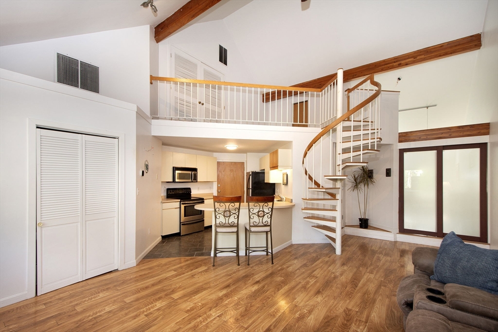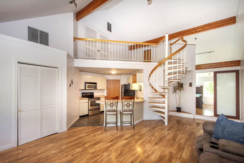 Welcome to JASPER LANE CONDOMINIUM, one of Randolph’s most highly sought-after owner-occupied communities. This top-floor corner townhome offers a bright, open layout with vaulted ceilings and direct access to your own private balcony. The versatile loft provides ideal space for a guest room, office or cozy retreat. Freshly painted interior with a NEW stainless-steel range, NEW dishwasher and washer/dryer plus GAS HEAT and CENTRAL AIR for year-round comfort. Enjoy in-unit laundry, a walk-in closet, two deeded parking spaces conveniently located across from your entrance AND a rare, LARGE PRIVATE STORAGE ROOM! Nestled in a beautifully landscaped setting with low fees ($244!), this Townhome is on the bus line and minutes to the Commuter Rail, major highways, shopping and dining. Perfect for commuters (20 min to Boston) and professionals alike, this home blends comfort, convenience and value. Townhomes like this rarely become available-don’t miss your opportunity to make this one yours!
