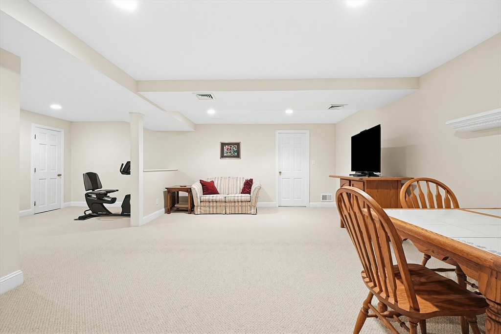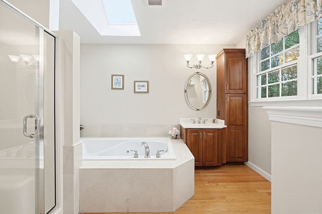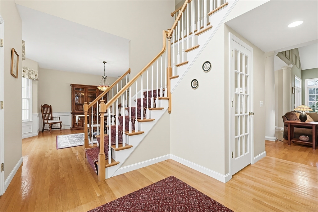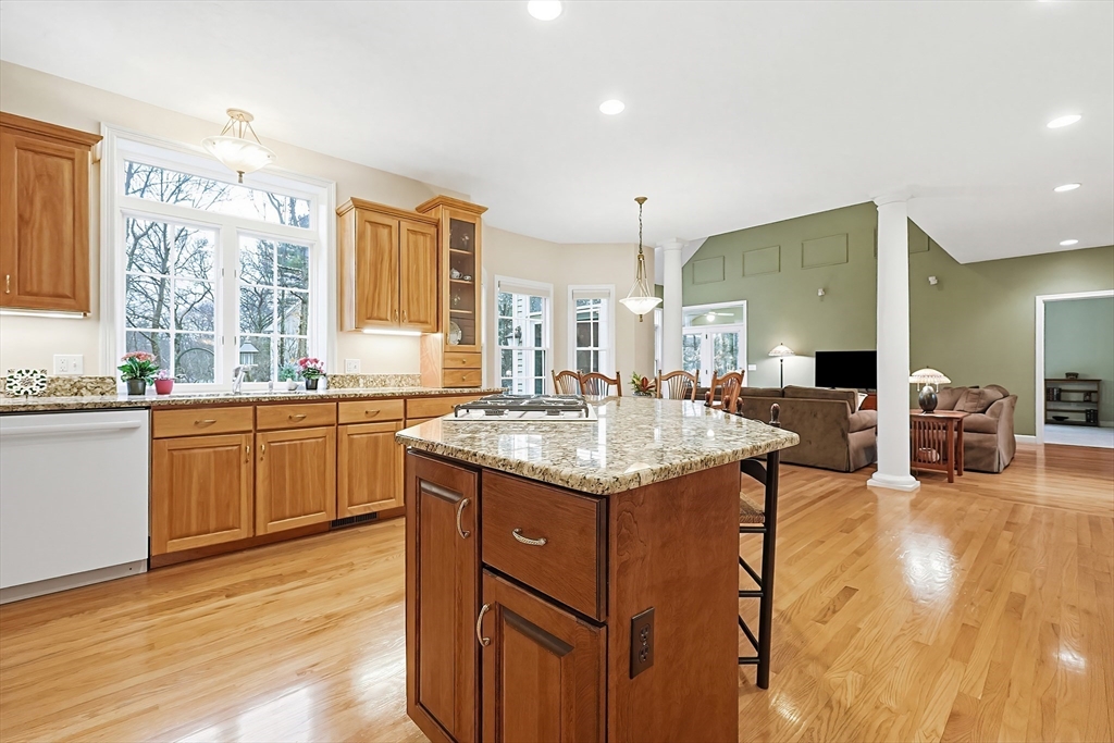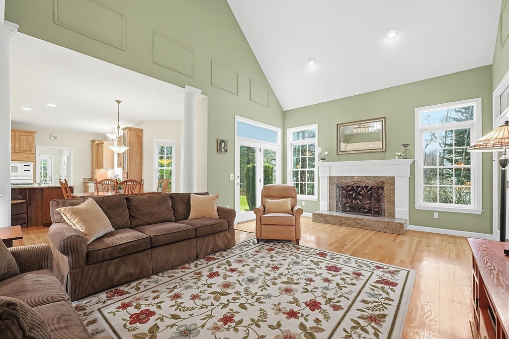 Graciously updated and impeccably maintained, this custom crafted and spacious home is sited on a beautiful lot in one of Holliston's finest and most sought after neighborhoods. The sunny kitchen with custom cabinetry, granite, newer appliances, island with gas cooktop and large pantry opens beautifully into the stunning family room with its dramatic vaulted ceiling, fireplace w/granite surround and custom mantle, transom windows, architectural detailing and French doors to both the dreamy screened porch and the inviting brick patio. Stately dining and living rooms perfect for entertaining; large home office with French door; pretty powder room and large mudroom with 2 closets, and laundry w/sink complete the main level. Four very generously sized bedrooms upstairs, showcased by the primary bedroom with its two walk-in closets, dressing room and skylight bath w/jacuzzi. Finished lower level adds a game/rec/play room, exercise room and built-ins. HW floors throughout & great closets!