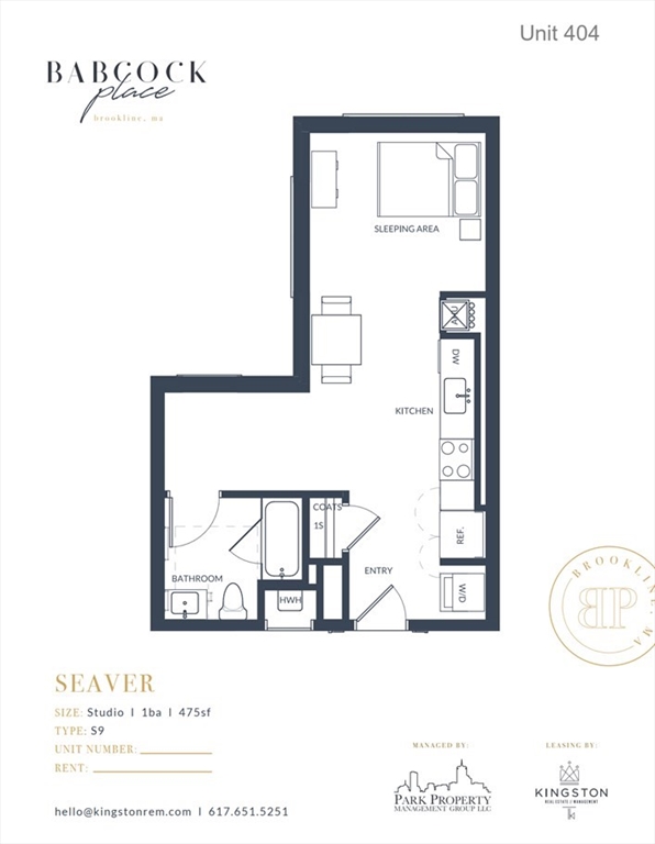 This large studio features full size appliances and tons of large windows for great natural light. Welcome to this one of a kind luxury apartment community, Babcock Place. Each unit features carefully selected upscale finishes and amenities including quartz countertops, over sized windows, and in unit laundry. Residents of this new construction building will enjoy spacious apartments on a quiet tree lined street in Coolidge Corner with unique amenities such as garage parking for rent (pending availability), bike room, and a spacious communal roof deck.