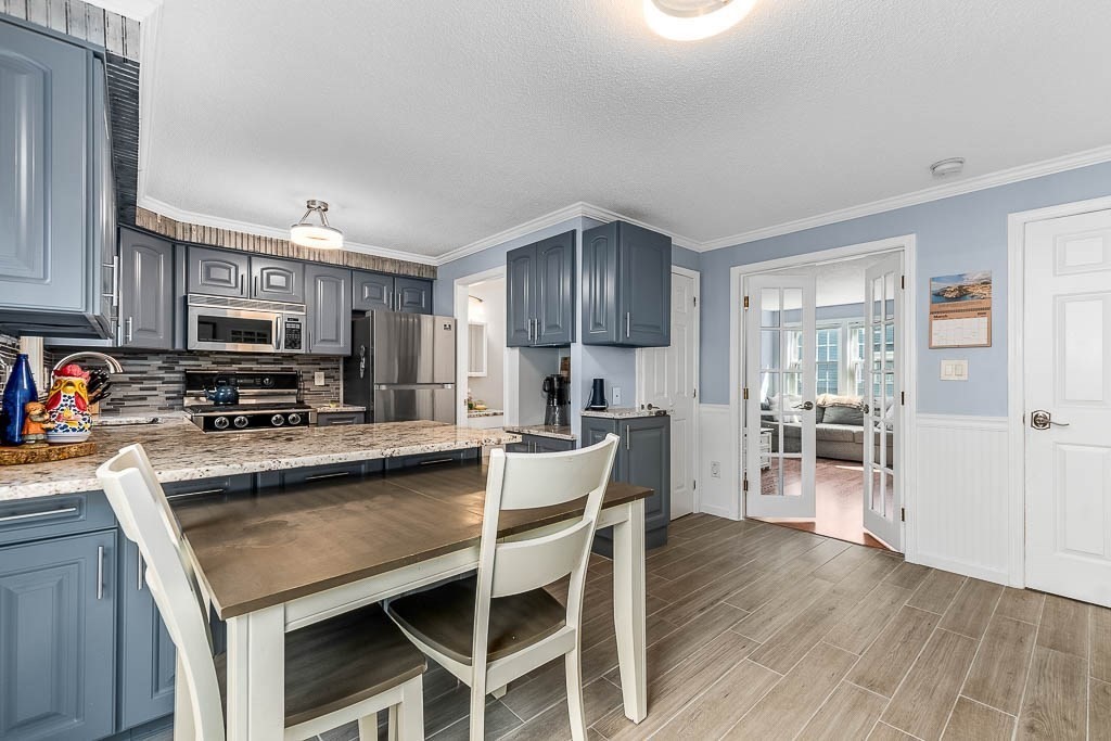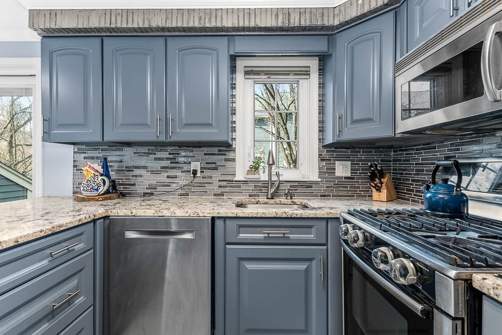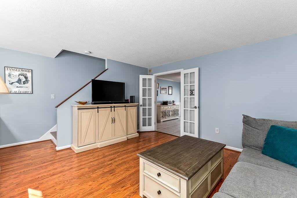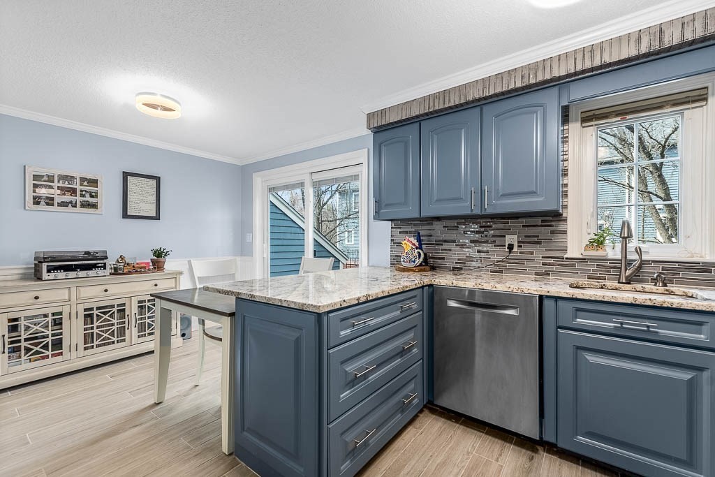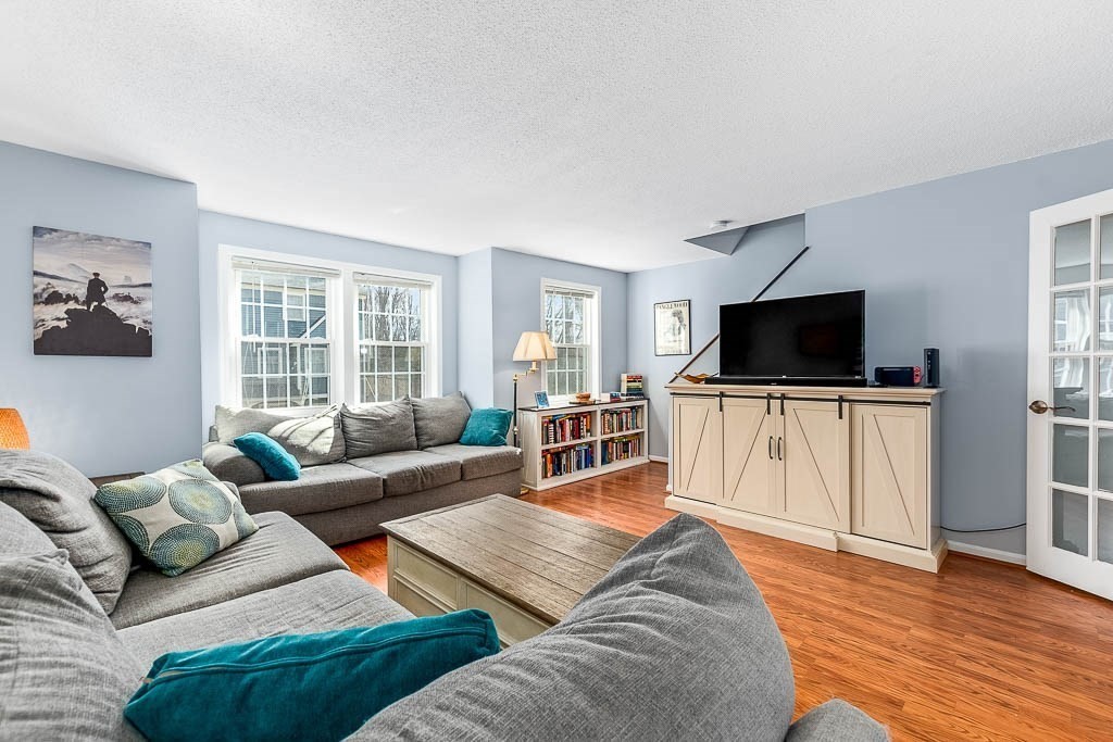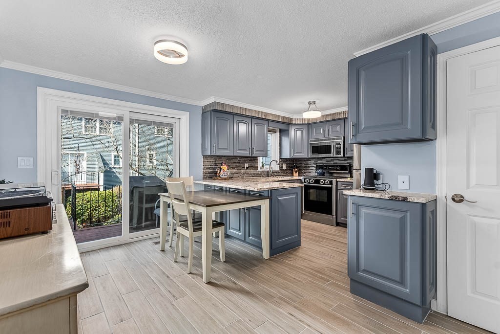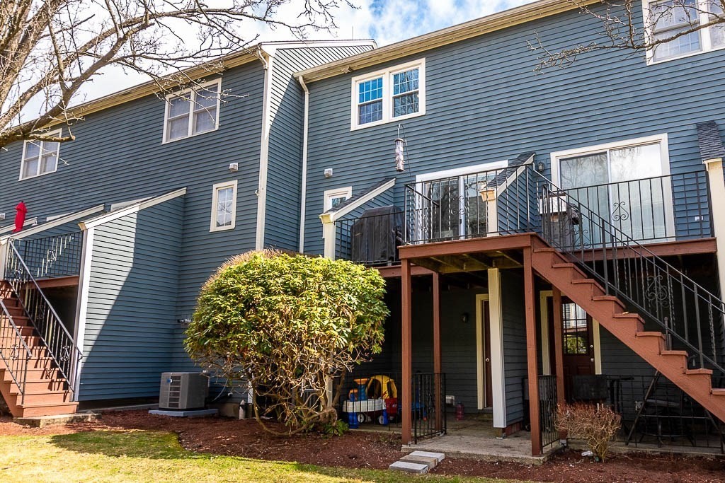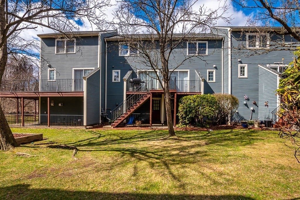 A gorgeous updated 3 level townhouse with 2 large bedrooms 1 full bath and 1/2 bath. The main level kitchen w/granite countertops stylish cabinets with pewter accents create a space you will love creating home cooked meals in. A peninsula overhang creates an eat-in space backing into the dining room accented with crown molding. This space opens into a back patio for private grilling and access to a beautifully maintained outdoor space. Living room with French doors and 1/2 bath complete this level. Upper level is where 2 large bedrooms with lots of closet space and master bath will greet you. First level entrance with access from the garage to a large coat closet, laundry room and outdoor access to a covered patio. Close by you will find Shopping, Restaurants, Rte3/495 access. Gallagher Train Station is minutes away. Walking trail along the river and Lowell-Dracut-Tyngsboro State Forest are very near.