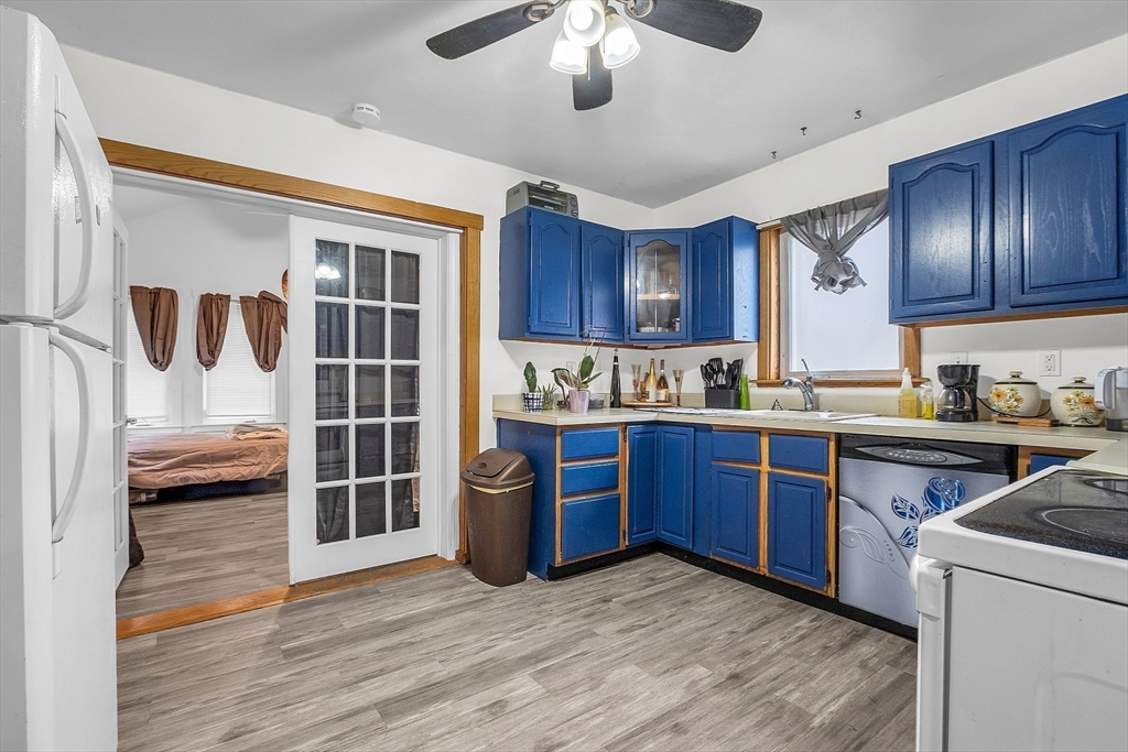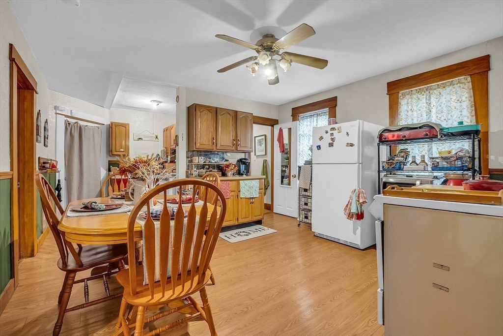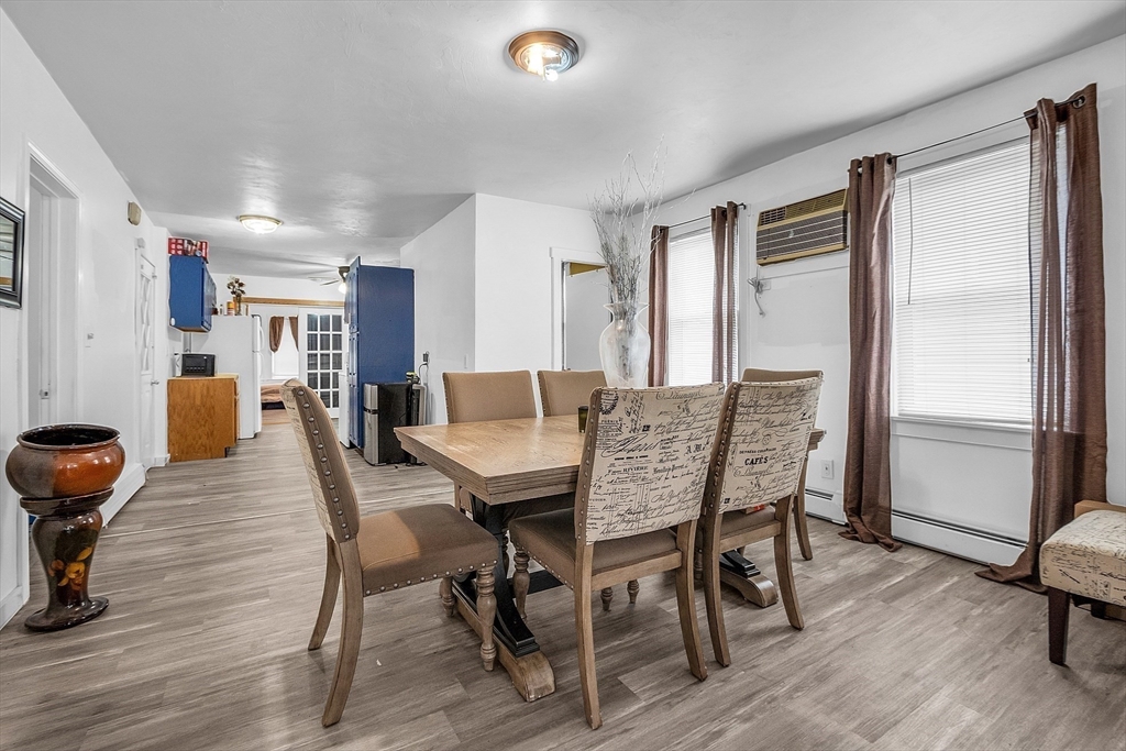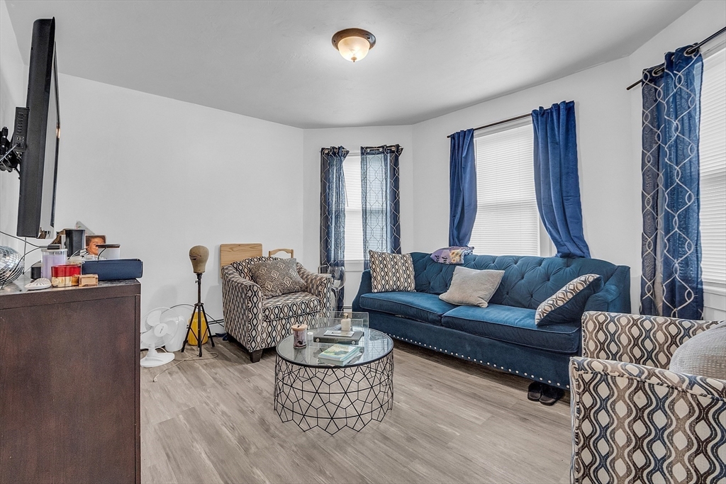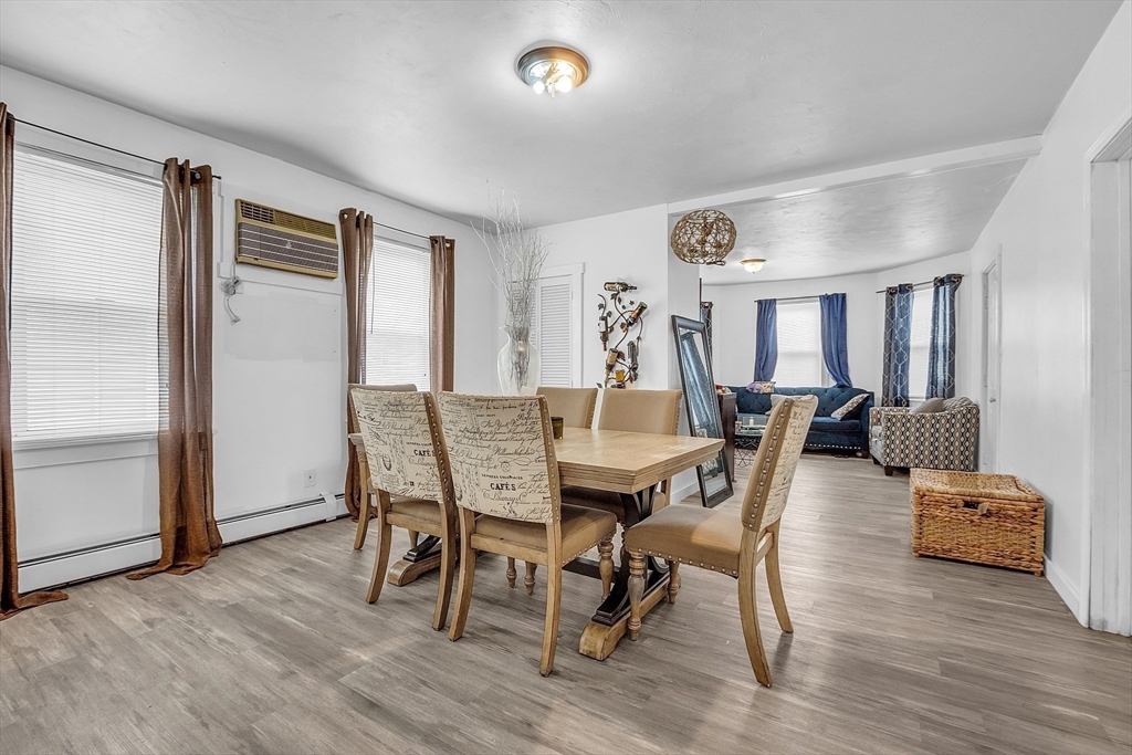 This two-family home offers a perfect opportunity for both first-time buyers and seasoned investors. The first-floor unit has a spacious layout consisting of two bedrooms, two bathrooms, a kitchen, dining room, living room and cathedral family room. Enjoy a private backyard that's ideal for relaxing or hosting gatherings. Upstairs you will find a well kept two bedroom, one bathroom apartment with kitchen and living room. The property is equipped with ample off-street parking and easy access to major highways, including Mass Pike. Commuting is convenient, and you're surrounded by local shops, small business, restaurant/dining, and entertainment options. This property delivers flexibility, live in one unit while renting out the other for passive income or build your portfolio. It's a great chance to secure a home that blends lifestyle and investment potential!