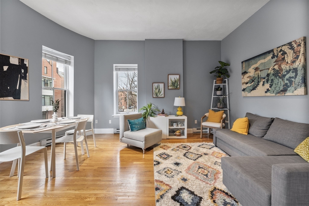 Avid Entertainers & Design Lovers, Look No Further! Classic South End Brick Row House, Oversized 1 Bedroom, 1 Bathroom with 747 Square Feet is set within a Classic South End Brick Row House on a Picturesque, tree-lined street. Located on the Second Floor with Corner Exposure, Four Large windows, high ceilings & abundant natural light with open views up West Springfield Street toward Back Bay. The open kitchen, Renovated in 2022, Open Kitchen is the Centerpiece of the Home, showcasing Quartz Countertops, Waterfall Island & Stainless-Steel Appliances. Generous Bedroom easily accommodates a King-Size Bed & offers a Large Closet! Hardwood floors throughout & Brand-New in-Unit Laundry add comfort. Pet friendly Building & Low Condo Fee. Toro, Stella, Orinoco lead a Dynamic South End Neighborhood Restaurant Scene — Boutique Retail Shop Experiences, Cafes, Parks & Art Galleries.