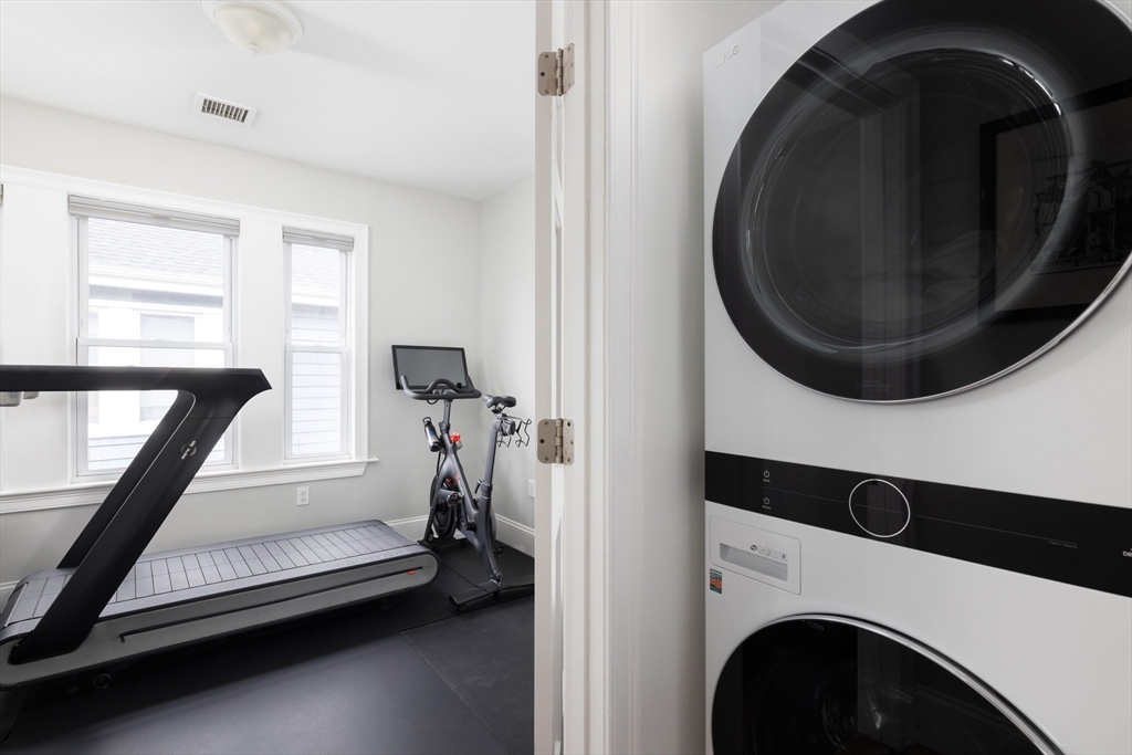 Welcome to 14 Hathaway St, Unit 2, in JP, where contemporary comfort meets timeless charm in this spacious 4-bed, 2.5-bath condo. Spanning almost 1300 square feet, this home is designed with functionality and stunning architectural design. The condo offers a lovely ensuite primary along with 3-4 additional good size bedrooms, beautiful wood floors and updated kitchen and bathrooms. The unit is complemented by central AC and recessed lighting that brightens every corner. The open kitchen is a cook's dream, featuring granite countertops, SS appliances, gas stove, dishwasher, and a convenient eat-in layout. Entertain guests in the spacious dining room or enjoy some quiet time in the home office or gym. The powder room adds extra convenience. Step outside onto your private porch or relax on the shared front porch. The in-unit washer and dryer make laundry a breeze, while the basement and private storage offer ample room for your belongings. Located near all JP has to offer on Centre Street