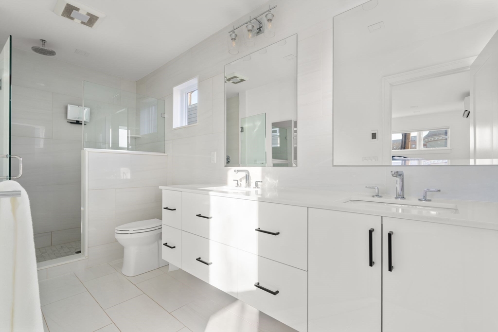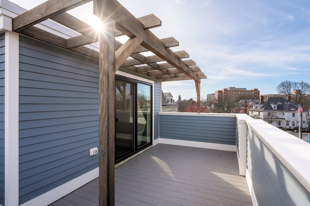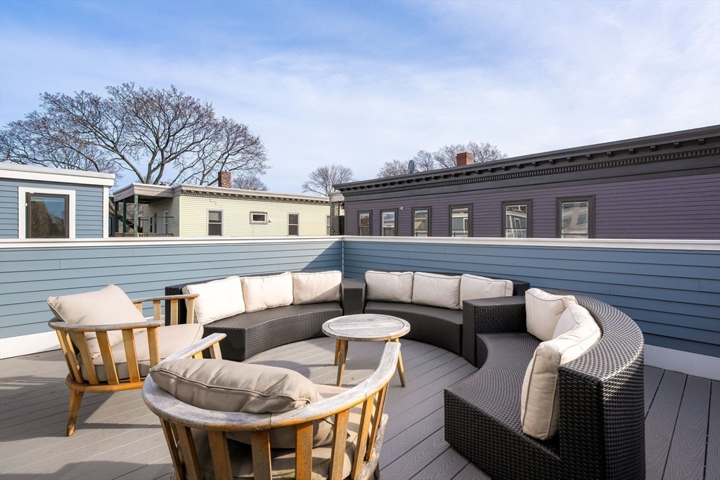 Modern, bold, and impeccably designed - this free-standing 2020 build delivers space, light, and effortless style across 2,788 square feet. The main floor centers around a sleek chef’s kitchen with premium appliances and a seamless flow into expansive living and dining spaces made for hosting. With 4 bedrooms and 3.5 baths, the layout delivers flexibility and comfort, including a serene primary suite with a custom California walk-in closet and spa-inspired bath with heated flooring. A finished lower level with a bedroom, full bath, and second living space with fireplace creates the perfect guest suite, office, or lounge. Upstairs, the third floor offers wet bar and bonus living space which opens to two oversized roof decks - ideal for entertaining providing panoramic views. Complete with a fenced yard, an EV charger and two deeded parking spaces, all just moments from Inman, Harvard, and Central Squares.
