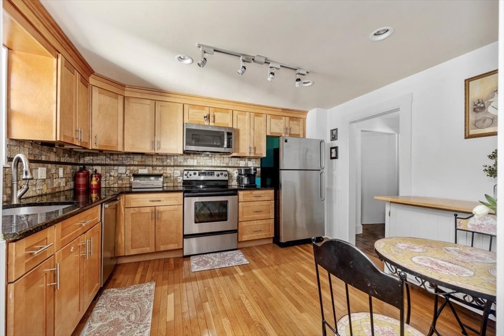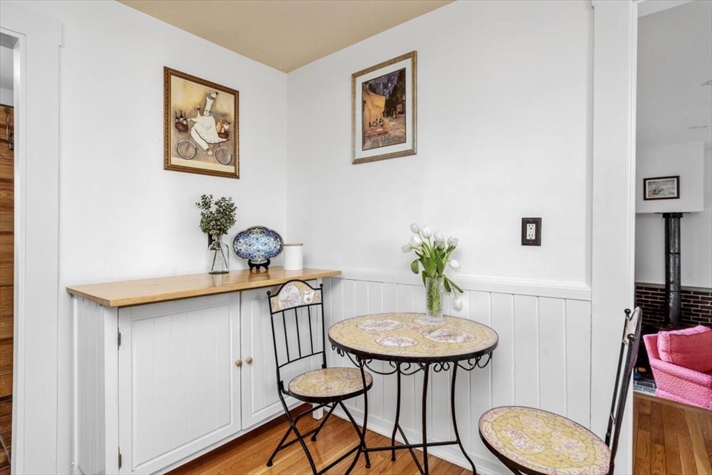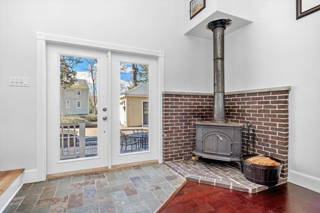 Exceptionally located in Hingham's picturesque downtown, this charming antique home blends character with comfort. Beyond an inviting farmer's porch, step inside the sun-drenched first floor, offering a flexible layout. Highlights include a cozy living room with fireplace, spacious office, elegant dining room, kitchen with walk-in pantry, full bath, & sunken living room that opens out to a flat, landscaped yard. The oversized patio, complete with fire pit, is an ideal place for entertaining. On the second floor, the primary bedroom boasts a fireplace & adjoining bonus room - perfect for a small office or nursery. Rounding out the upstairs are two additional, generously sized, bedrooms & a full bath. The walk-out basement, detached garage, & walk-up attic provide storage space & ample opportunity for expansion. Steps away from Hingham's restaurants, shops, commuter rail, & scenic harbor, this lovely home is a coalescence of history, charm, & convenience that you won't want to miss.