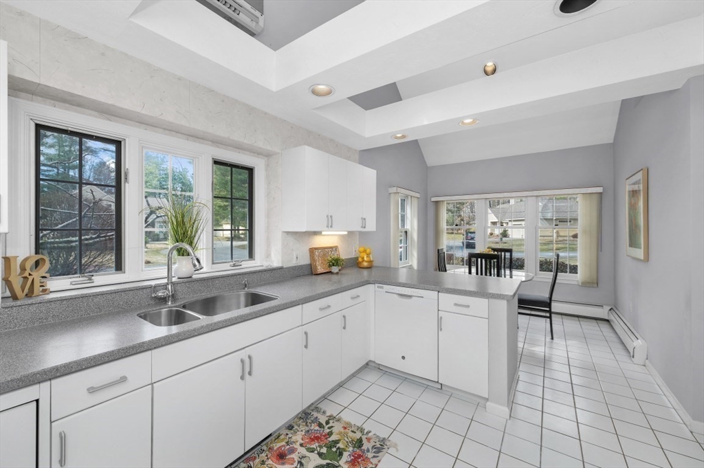 Welcome to 34 Pickman Drive, a truly loved Free-Standing Condo perfectly nestled in the heart of the Huckins Farm community. This bright & airy home features 3 well-appointed bedrooms & 2.5 bathrooms offering an exceptional blend of comfort & convenience. The thoughtfully designed open concept formal living room & dining room combo provide the perfect atmosphere for entertaining or relaxing w/its fireplace, skylights & vaulted ceilings while providing easy access to the enclosed sunroom & patio space. Enjoy the spacious kitchen w/its abundance of cabinets, counter space & the cozy breakfast nook. The 1st floor primary suite offers as a peaceful retreat w/ its custom closets & private bath complete w/soaking tub & shower. Half bath, laundry room & garage access complete the main level. Second level boast two oversized bedrooms & full bath. Bonus walk-up attic/storage space above garage! Community amenities- swimming pool, tennis/pickleball, garden area, clubhouse, trails & more!