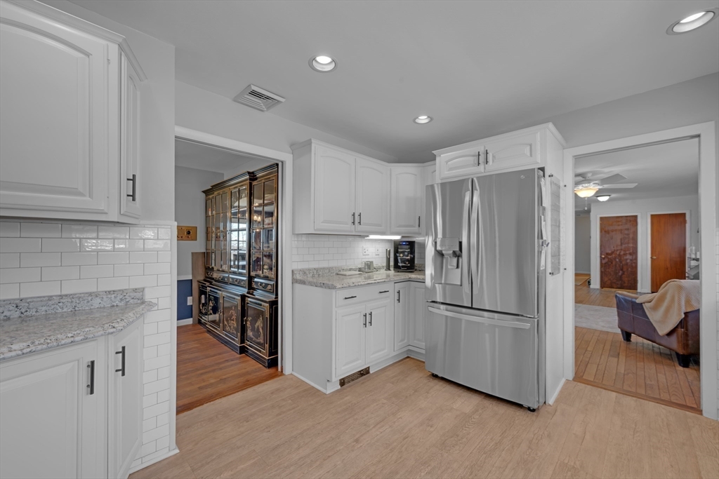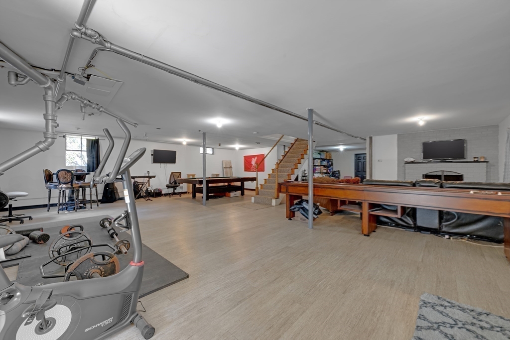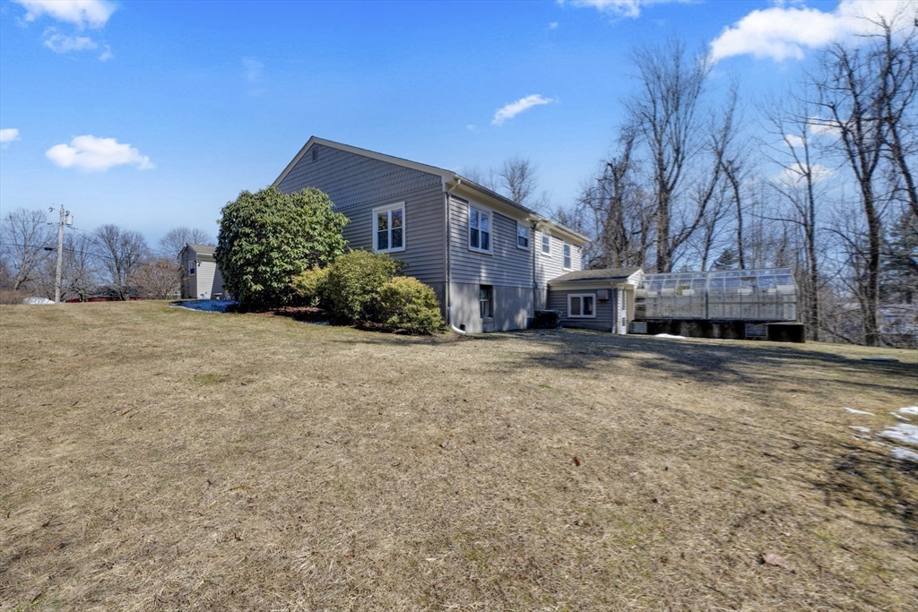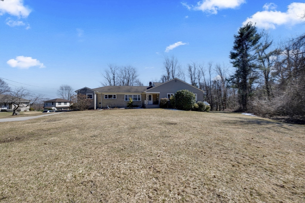 Space, flexibility, and comfort come together in this oversized ranch just minutes from the Worcester line. Designed for both everyday living and entertaining, the home features a bright, open living area with expansive windows and a stunning stone fireplace as the focal point.The kitchen and dining spaces offer both casual and formal options, along with a convenient laundry area and half bath. Four bedrooms are thoughtfully set on one side of the home, including a versatile room ideal for an office or guest space, along with a full bath.The finished lower level creates a second living area with a wood-burning fireplace, full bathroom, and direct access to the backyard and greenhouse. A unique home offering space, function, and flexibility in a prime location.