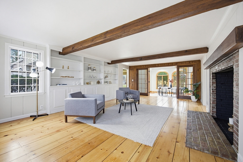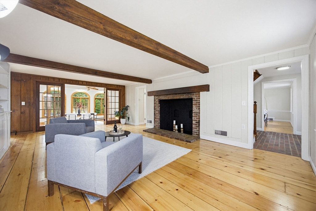 Welcome to 16 Coleman Road, sitting pretty on a corner lot and almost a full acre of land. This home offers large living spaces and a flexible floorplan, and oozes Colonial American charm with gorgeous wide pine flooring, three fireplaces, and rustic ceiling beams. The main level offers two large living areas - perhaps a family room and formal sitting room - each with a brick fireplace, a half bath, a spacious sun room with access to the private backyard, as well as a kitchen boasting a brand new stove, butcher block and corian counters and a generous dining area complete with a cozy gas stove and sliding doors letting in all the sunlight. Upstairs you will find the front-to-back primary suite with cozy fireplace, walk-in closet and three-quarter bath, and three to four additional bedrooms, perhaps a potential home office or sitting room, and a shared full bath. The basement offers storage, laundry, a sump pump and a brand new gas furnace. This home is a treasure, and it won't last!
