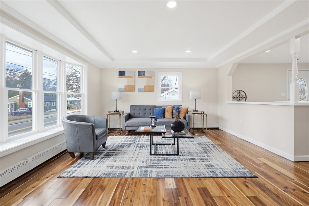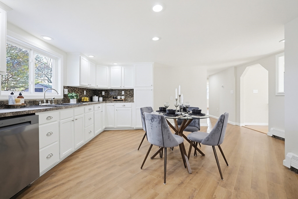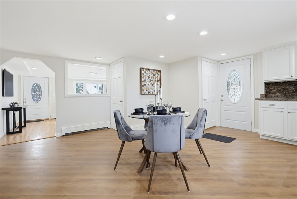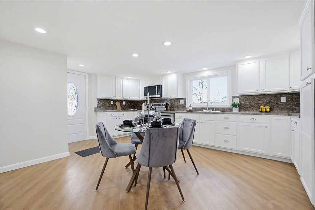 Five bedrooms, a finished lower level, and a backyard built for summer with an in-ground pool set the tone for this spacious and flexible home. The layout provides multiple options for extended living, guest rooms, or work-from-home needs. Living and dining areas offer a functional flow, while refinished hardwood floors add warmth and character to portions of the home. The large kitchen features a practical layout that works well for daily use, with potential for future updates to suit your preferences. Natural light carries throughout the home, and the floor plan offers flexibility for a range of living needs. The primary bedroom includes a private balcony, creating a simple outdoor escape. A finished basement adds additional usable space ideal for a playroom, office, or recreation area. The backyard features an in-ground pool, and a detached garage provides storage or workshop potential. A newer oil tank and hot water tank, both under five years old.