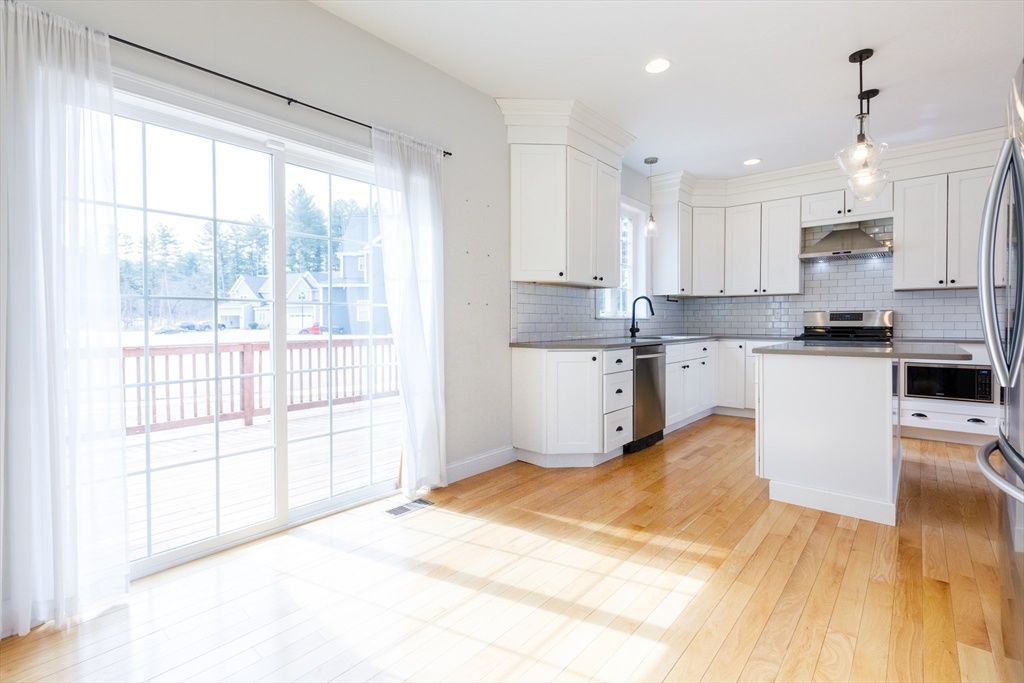 Welcome to 80 Compass Circle — This beautifully maintained 4-bedroom, 2.5-bath colonial set back from the road sits on one of the more private lots in the sought after Compass Pointe neighborhood of Boylston. Step inside to find a sun-filled open concept dining room and kitchen that features hardwood floors, shaker style cabinets accompanied by three layer crown molding, quartz countertops, and stainless steel appliances. Spacious family room with tall ceilings and a cozy fireplace. All 4 bedrooms on upper level with the primary boasting a large walk in closet, and bathroom showcasing both a tub and tiled glass door shower. Additional unfinished bonus room for storage or other purposes. 550 sq ft of finished basement space. Very spacious fenced in backyard with deck. Just minutes away from Route 140 and I-290. OPEN HOUSE SUNDAY 3/29 NOON-2PM