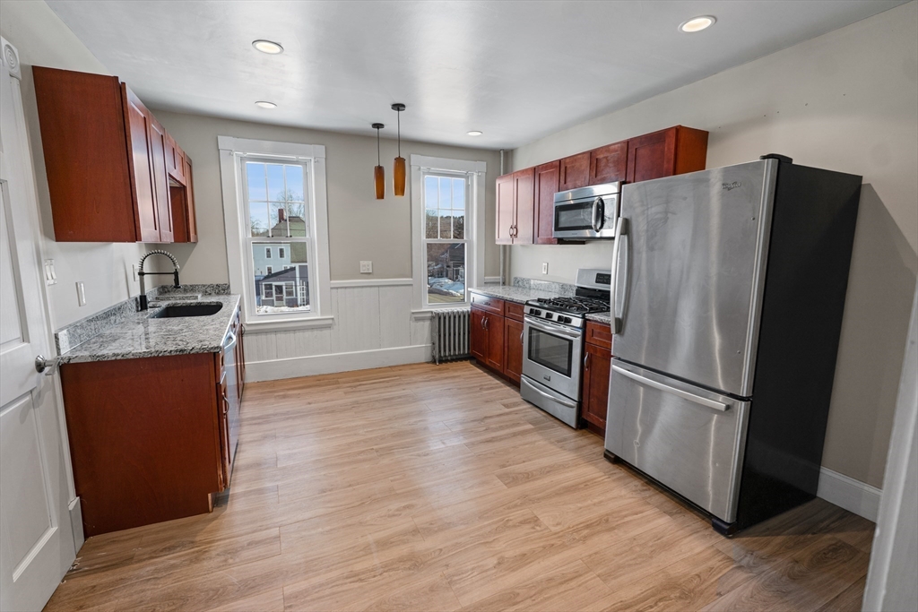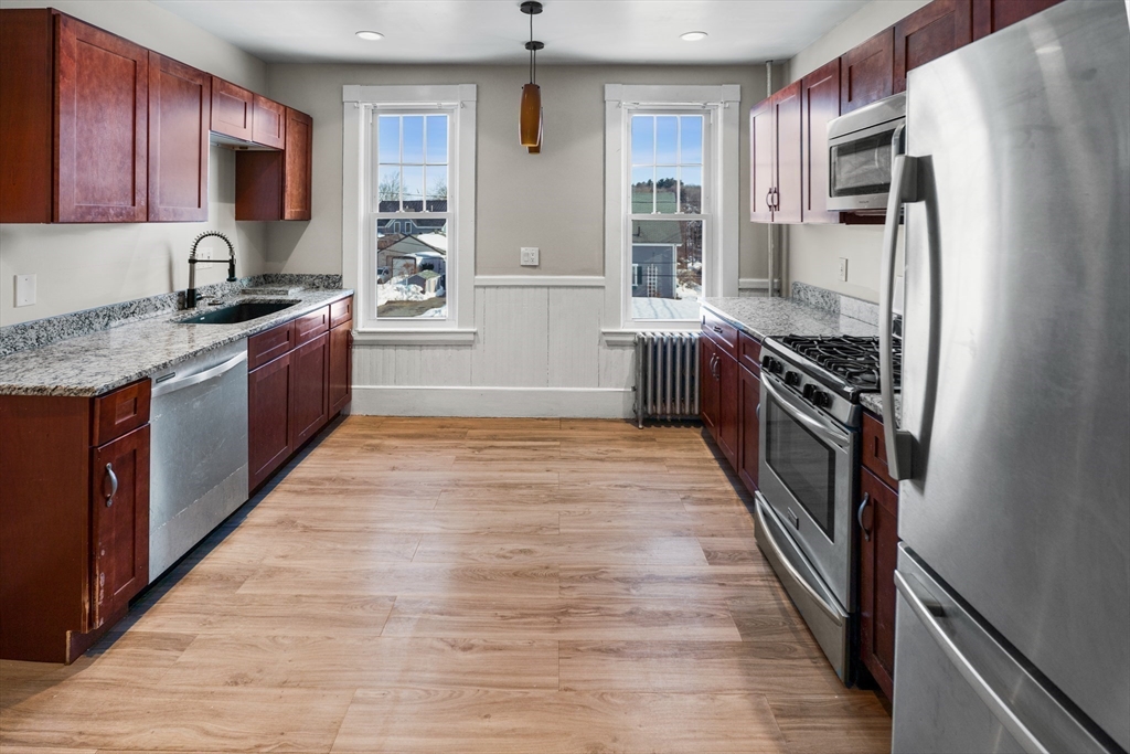If you have been waiting for a multi-family in Amesbury, this is the one. This beautiful 2-family home, located just one mile from downtown, offers incredible charm and character. The property has seen many updates, including a new water heater, mostly new windows, new gutters, and a deck.The units feature functional layouts and large windows that bring in plenty of natural light. Conveniently located near downtown Amesbury, the property provides easy access to local shops, restaurants, parks, and a variety of community amenities. The first-floor unit offers two spacious bedrooms with a flexible layout. The second floor unit includes three bedrooms with direct access to the third floor, providing expanded multi-level space and versatility, along with future potential for a 3-family configuration.