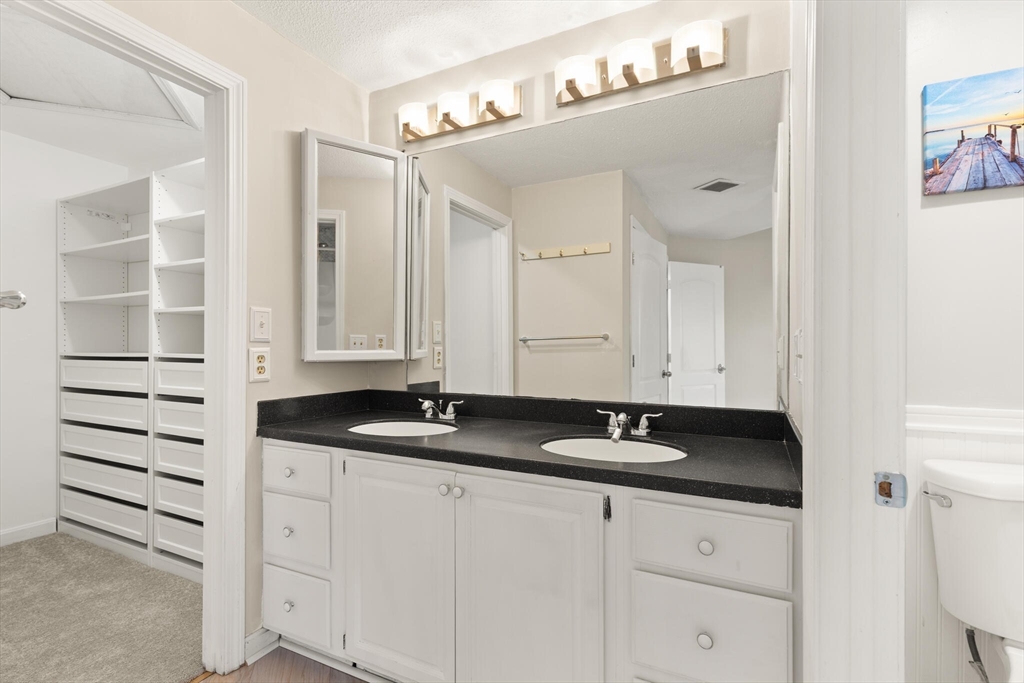 With gleaming hardwood floors, this spacious townhouse offers exceptional value and a move-in ready lifestyle in desirable Spyglass Hill. The bright, airy living room features a cozy pellet stove for colder evenings and flows into a well-appointed kitchen with white cabinetry and all new appliances (just 1 year old). Upstairs, two generous bedrooms with vaulted ceilings and ceiling fans create an open, comfortable feel, along with pleasant skyline views. Enjoy outdoor living with a large front porch surrounded by mature trees and fresh air. Major systems were updated in 2019, including furnace, central air, and hot water heater. A standout feature is the side-by-side two-car garage with additional parking in front. Ideally located near Shaw’s, Market Basket, restaurants, shops, commuter rail to Boston, and Ashland State Park for outdoor recreation.