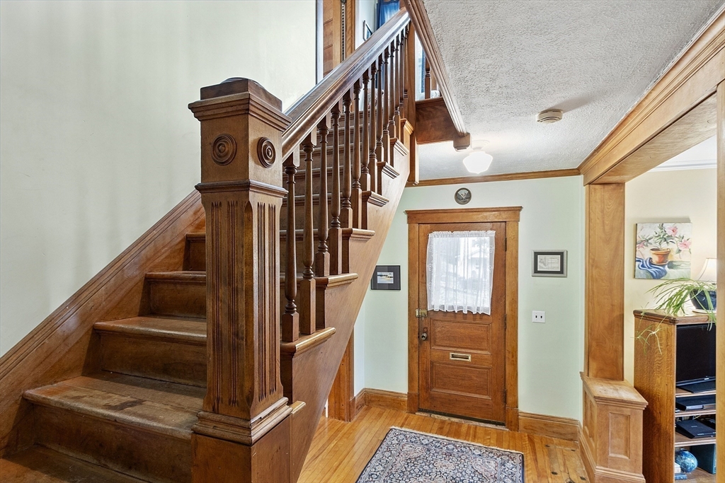 Welcome Home! This Cherished Westside home blends timeless character with thoughtful modern updates. A welcoming front porch invites quiet mornings and relaxed evenings. Inside, a gracious foyer opens to three levels of living with original hardwood floors, solid wood doors, crown molding, and classic trim and details impossible to recreate. The main level features a fireplaced living room, formal dining room, private den/office with pocket door, and an updated eat-in kitchen leading to a deck and private backyard. Five bedrooms, two full baths, tall ceilings, and abundant natural light create a bright, airy feel. The third floor offers a fifth bedroom, spacious hall, and walk-in attic for storage or future expansion. Complete with a one-car garage, off-street parking for four, spacious basement, refreshed baths and kitchen, updated electrical, fresh exterior paint, and a meticulously maintained slate roof—all just minutes to Schools, Train, Hospitals, shops, dining, dogpark, & more!