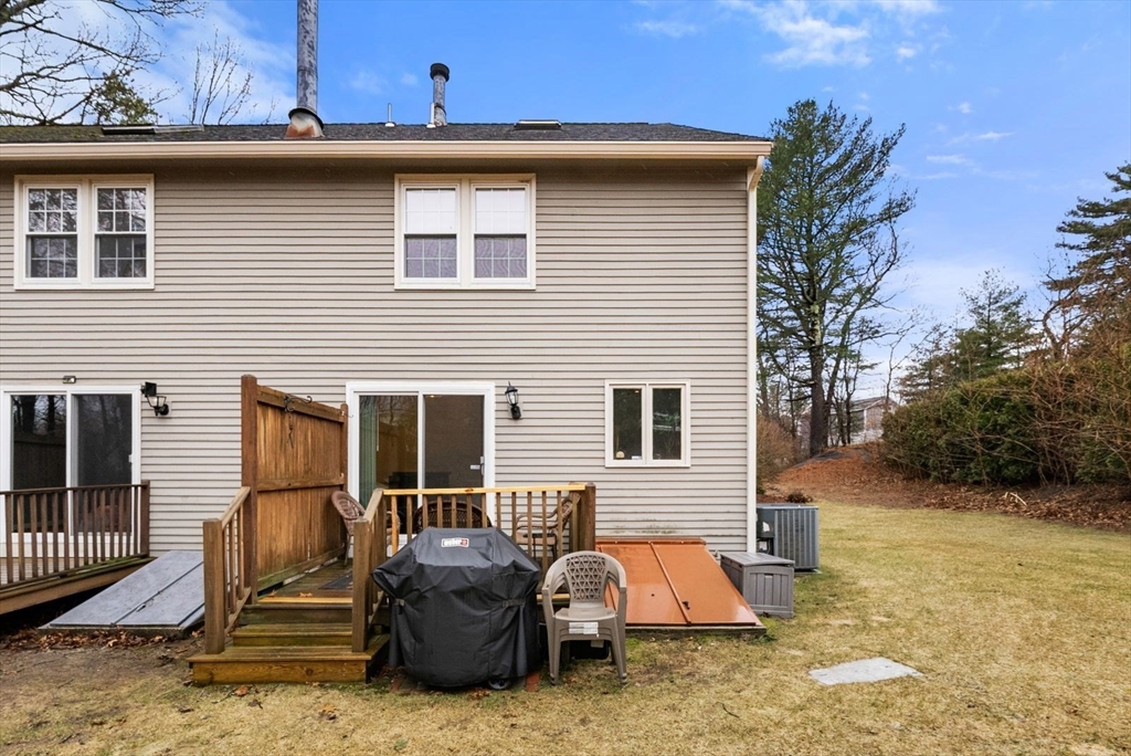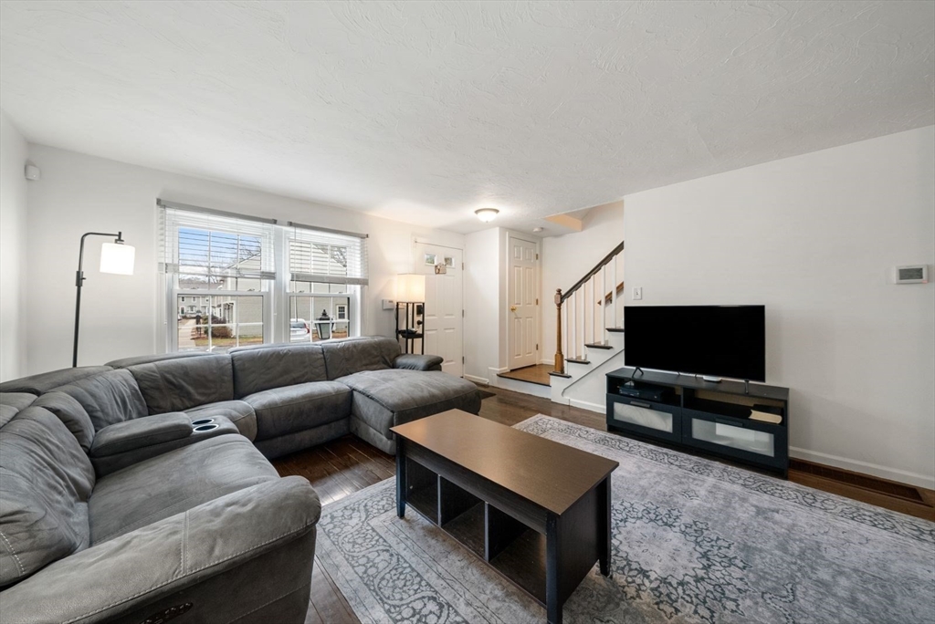 Welcome to this beautifully updated 3-bedroom end-unit townhouse offering exceptional privacy & abundant yard space rarely found in townhouse living. This move-in ready home features brand new hardwood flooring throughout & fresh interior paint, creating a bright, modern feel. The eat-in kitchen is equipped with stainless steel appliances & opens directly to a private deck.The inviting living area includes a cozy wood-burning fireplace & central AC for year-round comfort. Upstairs, you’ll find 3 well-proportioned bedrooms & a full bath, while the full basement provides excellent storage & flexibility. Enjoy the ease of 2 deeded parking spaces directly in front of the unit, along with a well-run, pet-friendly HOA with low fees, making this an ideal low-maintenance lifestyle without sacrificing space or comfort. Conveniently located near the Walpole Town Forest, shops, restaurants, & major highways, this home offers the perfect blend of privacy, outdoor space & everyday convenience.