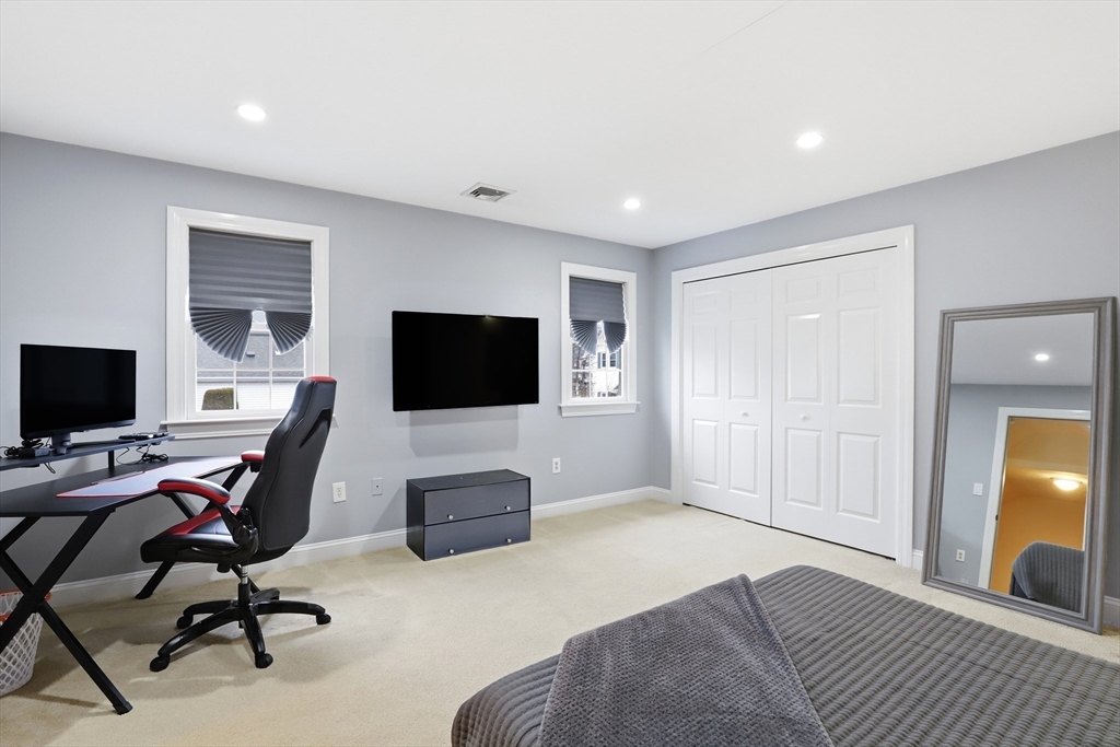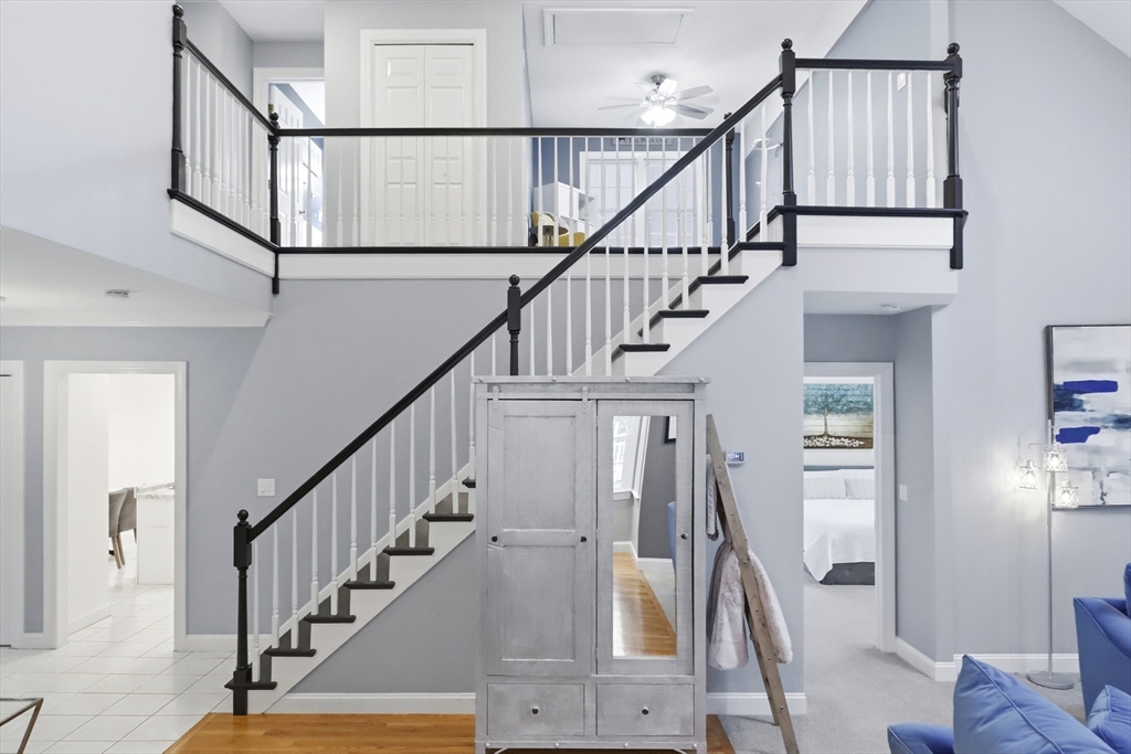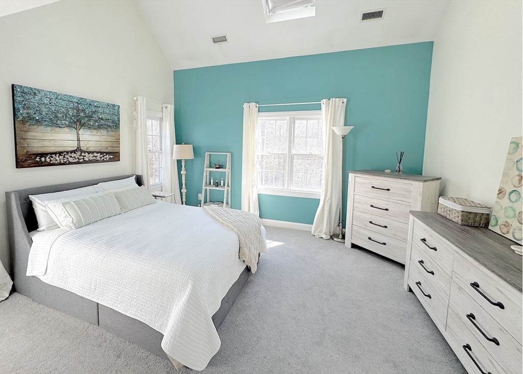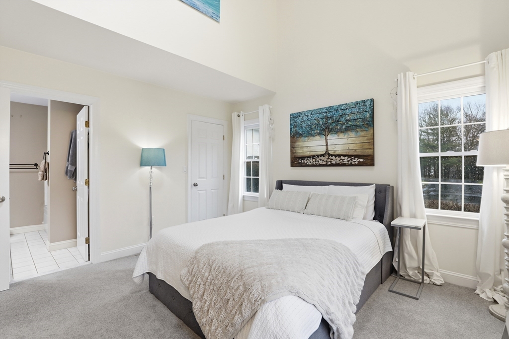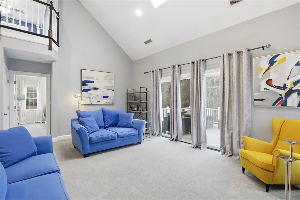 Step into this premier end unit townhome in the exclusive Braintree Hills community, offering 3,679 sqft of beautifully proportioned living space. Crafted for those who value elegance & privacy, this home lives like a single family house without the demands of maintenance. The dramatic great room, framed by cathedral ceilings, cascading skylights, & a gas fireplace creates a breathtaking centerpiece, opening to a serene deck embraced by greenery. The 1st floor primary suite feels indulgently private, complete w/a spa inspired jacuzzi bath & calming ambiance. A polished eat in kitchen features a breakfast nook & generous pantry space. Upstairs, 2 spacious bedrooms & a lofted gallery overlook the grand main level w/artful dimension. The expansive walkout lower level, w/full bath, laundry, & flexible living areas, invites possibilities for an in law suite, executive workspace, gym, or media room. A two car garage & effortless access to Boston complete this rare, distinguished offering.