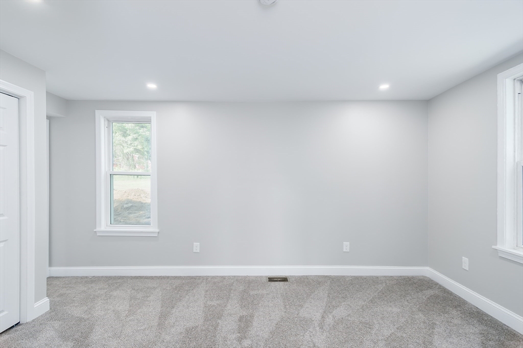 Absolutely stunning, remodeled Cape on a picturesque 2-acre lot! Move right in and enjoy three bedrooms, two full baths, and a beautiful first-floor main suite with an en-suite tiled bath. The modern kitchen features new white shaker cabinets, granite countertops, subway tiles, stainless steel appliances, and an island, all complemented by hardwood flooring and an open concept with partially vaulted ceilings that expose the second-floor lofted hallway. Cozy up in the spacious family room with a stone fireplace (electric), cathedral ceilings, and French doors leading to the backyard. The second floor offers two generous bedrooms and a full bath, with recessed lighting throughout the home for ample brightness. Recent Updates include a new roof, windows, heating system, central AC, septic system, electrical service, and more. Plus, a large barn/shed provides extra space. Relax on the newly installed front deck and take in the scenic views. Showings to begin Friday 3/27 @ 12:00pm