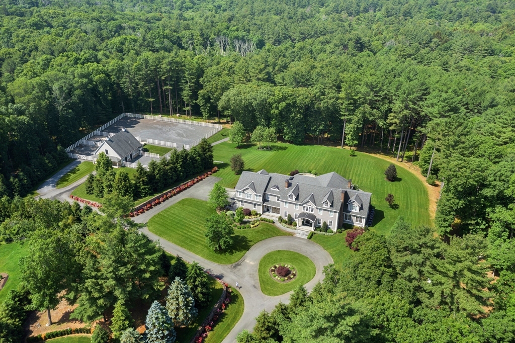 Majestic and truly one of a kind, this exceptionally private equestrian estate is nestled behind gates within the Blue Hills Reservation, offering direct riding access to over 7,000 acres of protected landscape and year-round outdoor pursuits. Set on more than eight tree-lined acres, the grand compound includes a masterfully constructed main residence, carriage house, expansive garage, and beautifully appointed stables. Designed for both refined living and effortless entertaining, the home features a stunning chef’s kitchen, a soaring vaulted great room with an impressive fireplace and hearth, and seamless indoor-outdoor flow to a covered outdoor kitchen and generous fire pit terrace beneath the stars. Located moments from the prestigious Milton Academy and within easy reach of both Boston and Providence, this extraordinary offering delivers rare privacy, scale, and sophistication in a setting that is simply unparalleled.