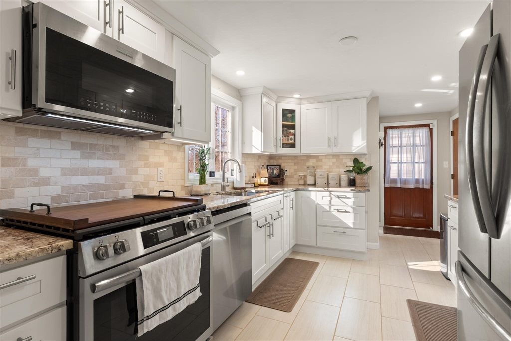 Wait no longer! This Colonial has just been renovated and tastefully decorated from head to toe just for you! Open the door and the main floor which flows from room to room...living room to dining room to kitchen. Behold the spacious living room with a wood burning fireplace. Just around the corner is the dining room, as well as the fully renovated kitchen, updated with new cabinets, granite counter tops, stainless steel appliances and a new tile floor. Need an office or second sitting room…the brightly lit sunroom, lined with windows, is the place to be overlooking the backyard. Upstairs is the primary bedroom, a full bath just down the hall, and two additional bedrooms. Lots of room for entertainment. Outside is a well, kept fenced in, backyard with a charming chicken coop just waiting for some new baby chicks. New vinyl siding, all new windows, new roof and a new kitchen. Upgraded electrical panel as well as generator hookup, and much more! Move in ready for sure!