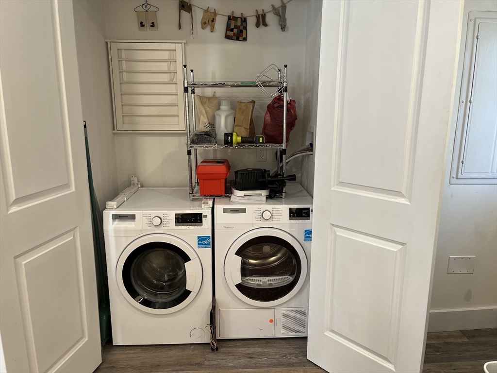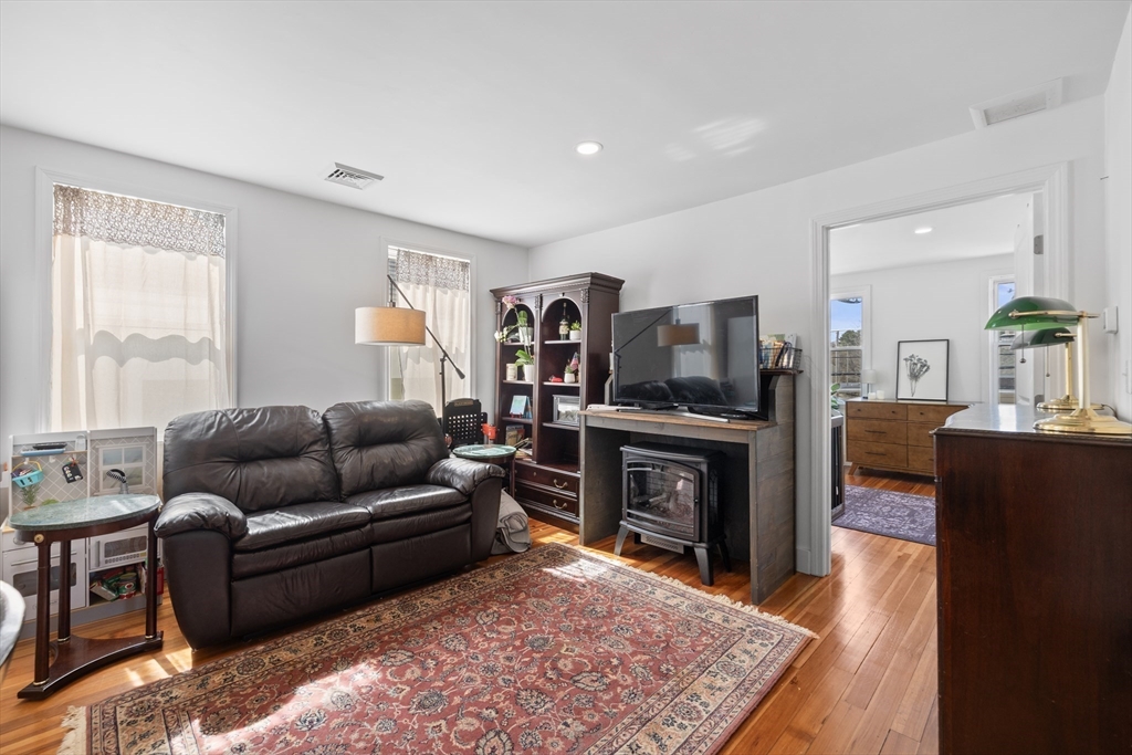 Sun-splashed recently renovated 2-bedroom condo located on the second floor of a charming two-family home. This bright and inviting unit features an abundance of windows, hardwood flooring, LED recessed lighting, central air and in-unit laundry. The updated kitchen offers quartz countertops, newer appliances, and durable laminate flooring, seamlessly opens to a spacious living area—perfect for entertaining, versatile bonus space ideal for a home office plus future expansion potential with access to a walk-up third level waiting for your ideas. Additional highlights include two deeded off-street parking spaces and a fenced backyard for added privacy and outdoor enjoyment. Ideally situated in historic downtown Topsfield, this home offers convenient access to local shops, dining, and all the charm the area has to offer.
