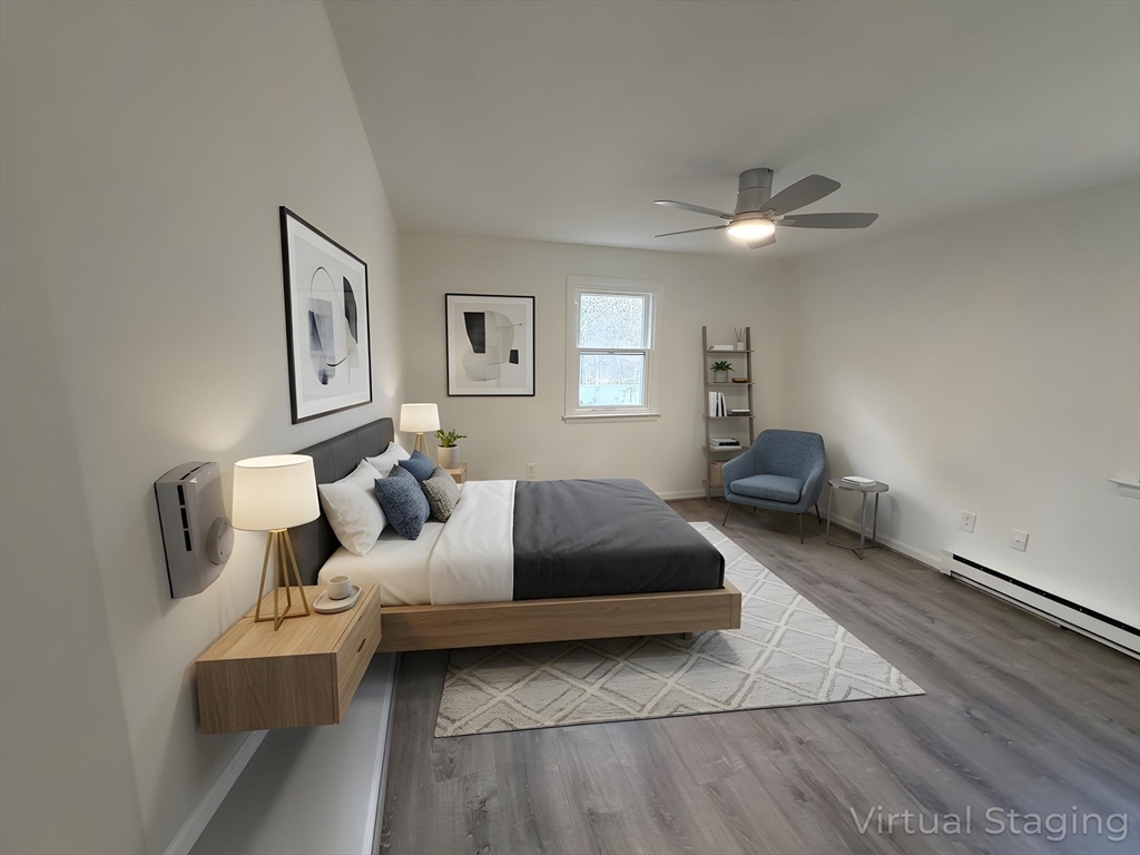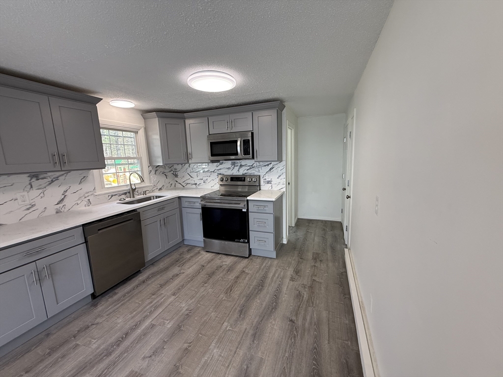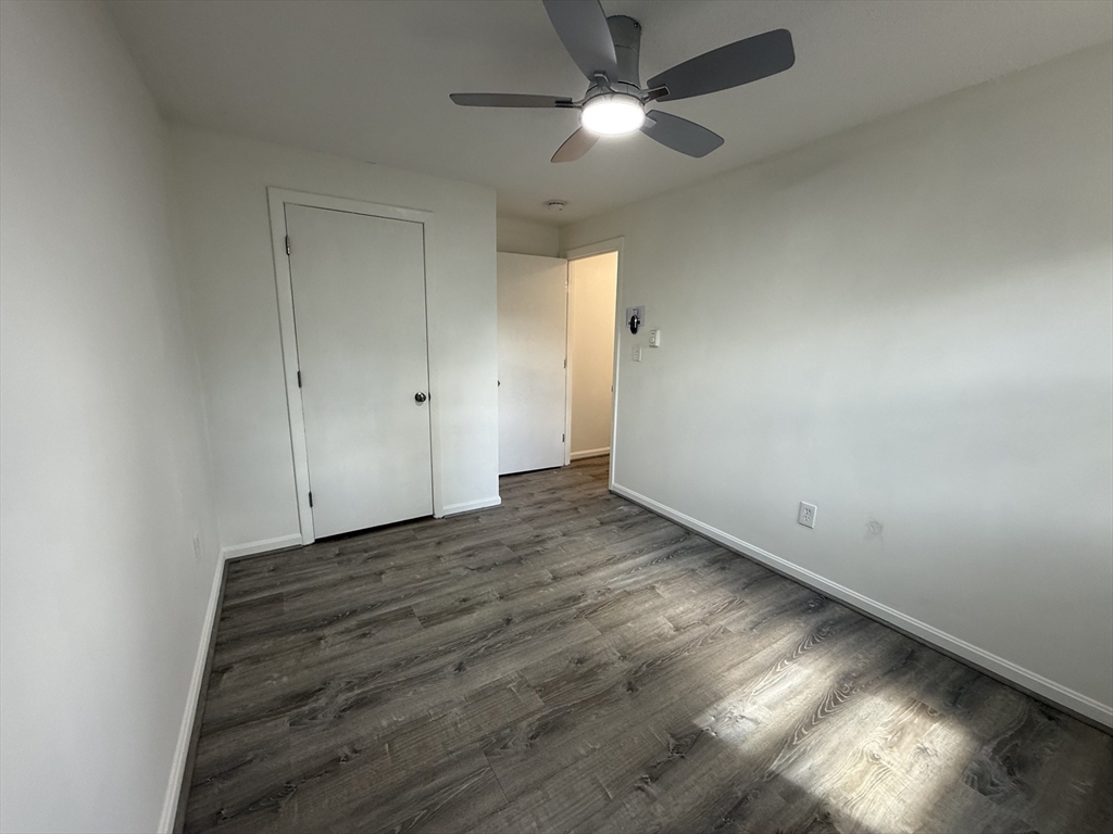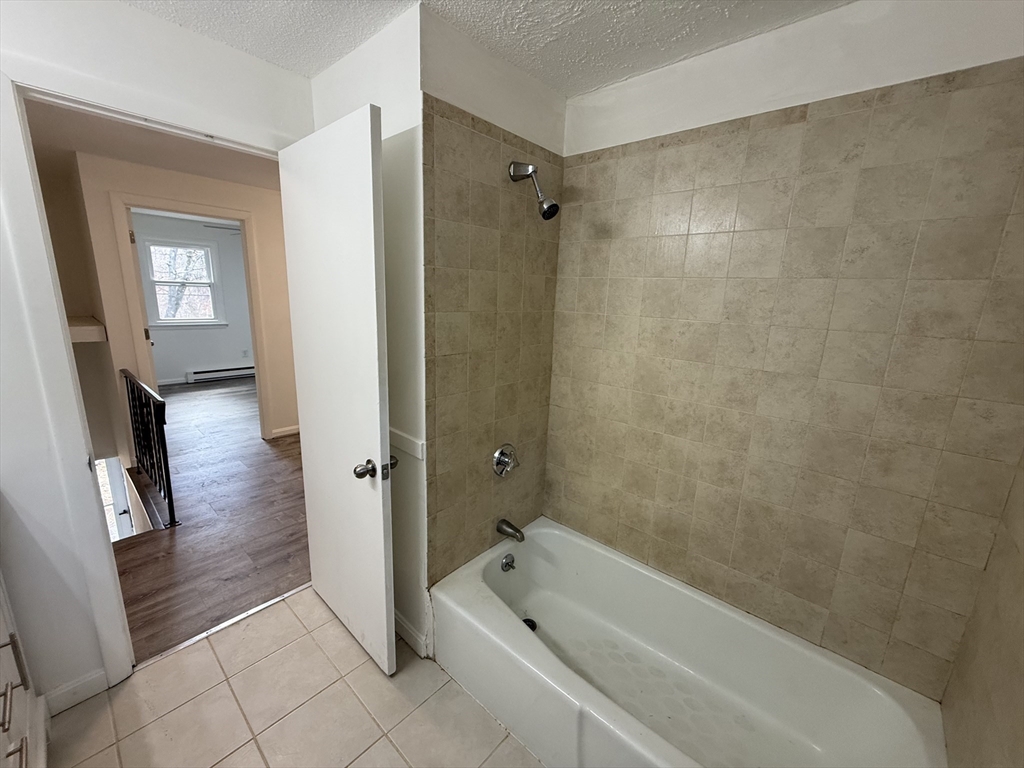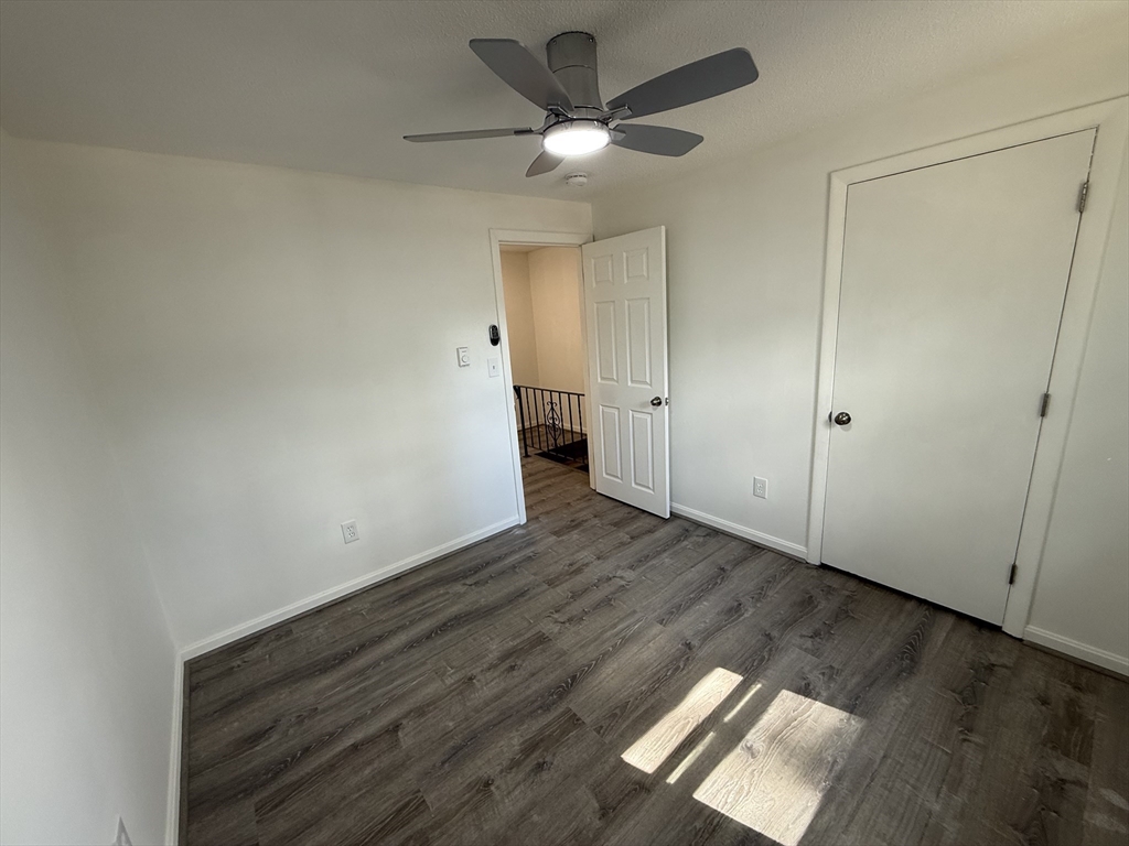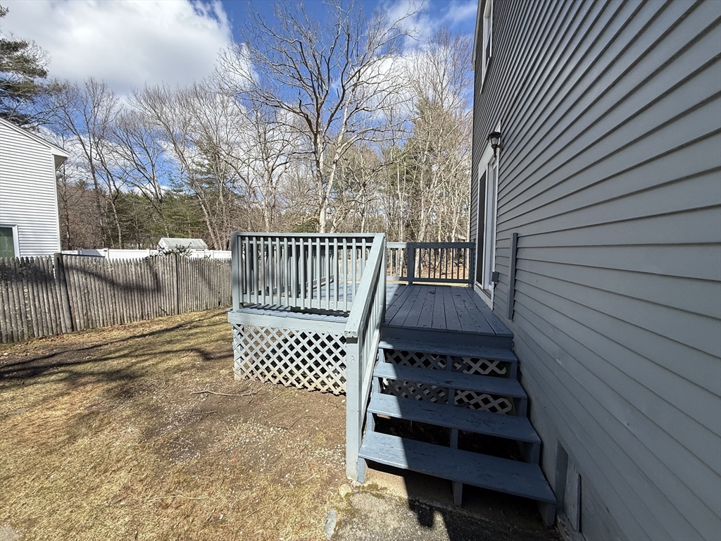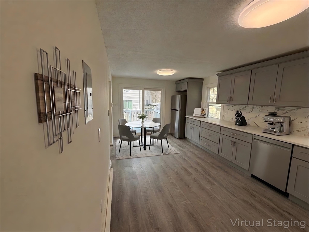 Beautifully renovated 3-bedroom, 1.5-bath townhouse offering modern finishes and a spacious, functional layout. The updated kitchen features gray shaker cabinetry, granite countertops, stainless steel appliances, and tiled flooring. Bright, open living areas and bedrooms include brand new vinyl plank flooring, while both bathrooms are tastefully updated with tile finishes, including a fully tiled tub/shower. LED lighting is installed throughout, along with remote-controlled ceiling fan/light fixtures in the bedrooms. Sliders off the kitchen lead to a private deck overlooking a large open backyard, ideal for relaxing or entertaining. Additional features include off-street driveway parking, generous closet space, and a full unfinished basement with laundry hookups and excellent storage. Electric baseboard heat with individual room thermostats allows for customizable comfort. Conveniently located near shopping, parks, and major commuter routes.