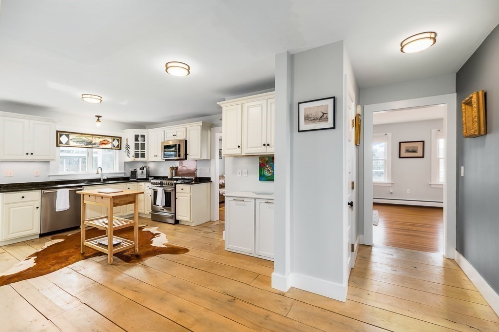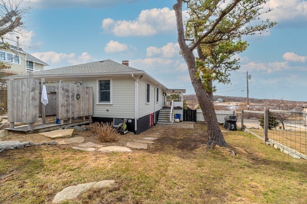 Beautifully updated single-level 2BR/1BA home in desirable Avenues of Rockport’s Andrews Point with sweeping ocean views extending to New Hampshire and Maine. Enjoy refreshed interiors featuring a dining area with fieldstone gas fireplace, hardwood and white oak floors, a light-filled kitchen with stainless appliances, and a primary bedroom with walk-in closet and ocean vistas. Outdoor amenities include a wrap-around porch, wildflower garden, outdoor shower, and a natural ledge patio that blends seamlessly with the coastal landscape—perfect for relaxing, entertaining, and watching summer fireworks from afar. Three-car parking adds convenience. Enjoy nearby water access via the Atlantic path public ways, where scenic oceanfront paths and natural shoreline views enhance the relaxed rhythm of coastal living. An ideal year-round home, downsizing opportunity, or coastal retreat steps from Rockport’s natural beauty. Showings start at open house, Sunday March 29, 11:30-1:00