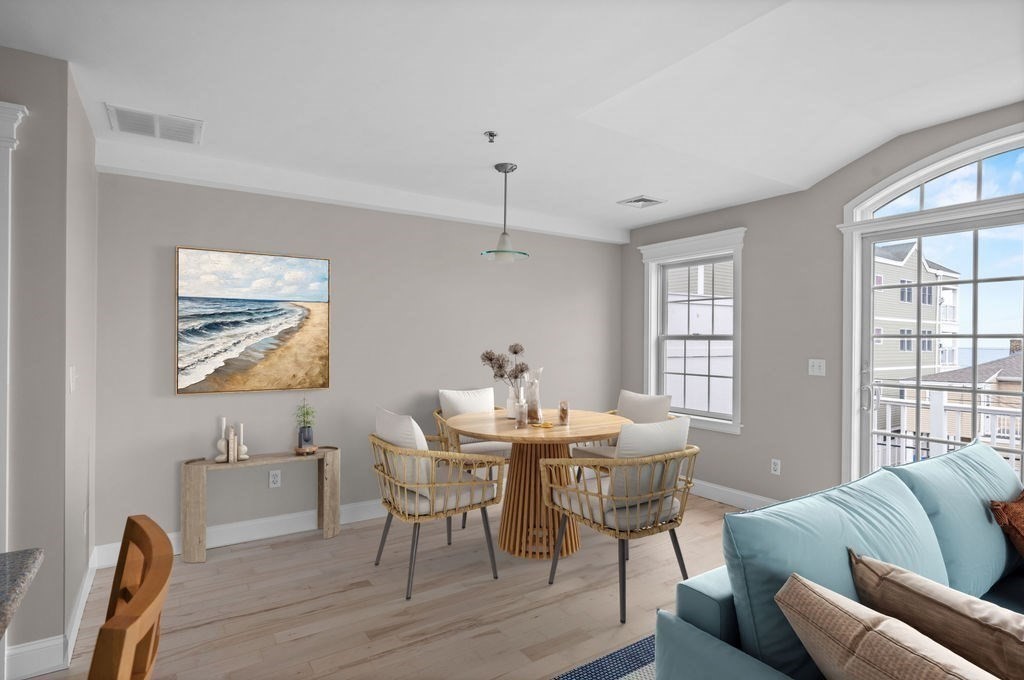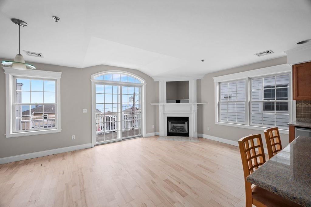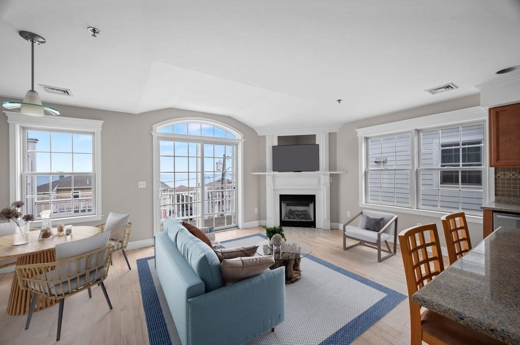 Just in time for summer! Move right in to this pristine 2-bedroom, 2-bath condo offering effortless coastal living with public beach access just around the corner and close proximity to the beach center’s restaurants and shops. The open-concept kitchen, dining, and living area features beautiful Hickory and ceramic tile flooring, a center island with seating, Silestone countertops, stainless steel appliances, and a cozy gas fireplace. A French slider opens to your private deck with ocean views—perfect for relaxing or entertaining. Thoughtful details include a custom hallway bookcase with lower cabinets for added storage and a convenient laundry closet with a stackable washer and dryer. Both spacious bedrooms offer hardwood floors, ceiling fans, and ample closet space, including a primary suite with its own ¾ bath. Additional highlights include a one carport space, one outdoor parking spot, dedicated storage, and a pet-friendly association allowing up to two common household pets.