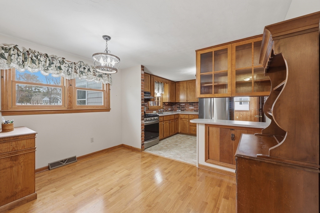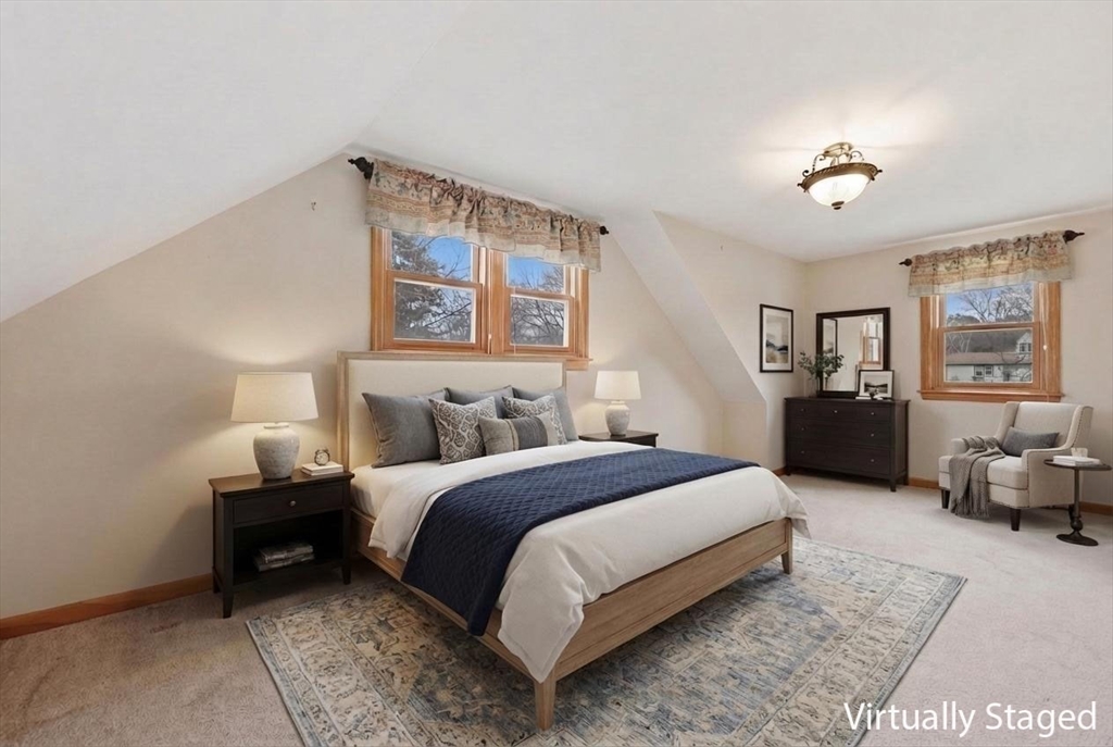 Charming storybook Cape with a spacious side addition, offering a flexible layout & inviting indoor-outdoor living! The open floor plan features a sun-filled dining room with tile flooring & a beautiful box window, flowing into a family room with a corner fireplace. The eat-in kitchen boasts a breakfast bar—perfect for everyday living and entertaining. The living room features HW floors & a cozy fireplace, while a stunning screened porch with vaulted ceiling opens to a composite covered deck for seamless relaxation. The main level includes 2 bedrooms & a full bath w/ tile flooring. Upstairs, the primary bedroom features hardwood floors & access to unfinished space for additional storage, along w/ another bedroom offering w/w carpet & a walk-in closet, plus a shared full bath. Enjoy central AC, abundant storage throughout & a full basement ready to be finished. Outside, the fully fenced, level backyard is a true retreat with a paver patio—ideal for gatherings or quiet evenings at home.
