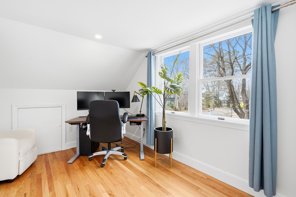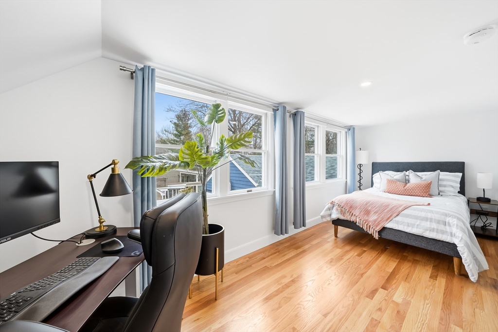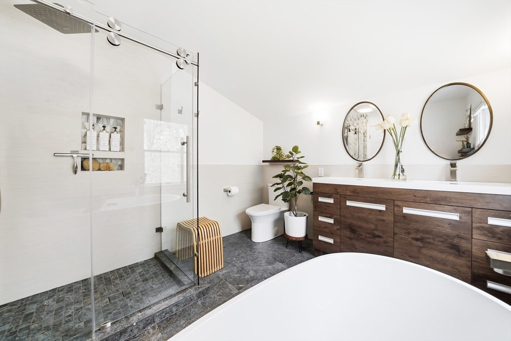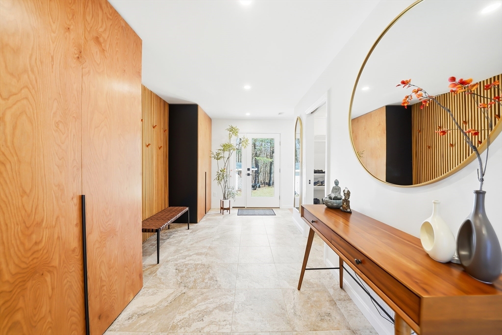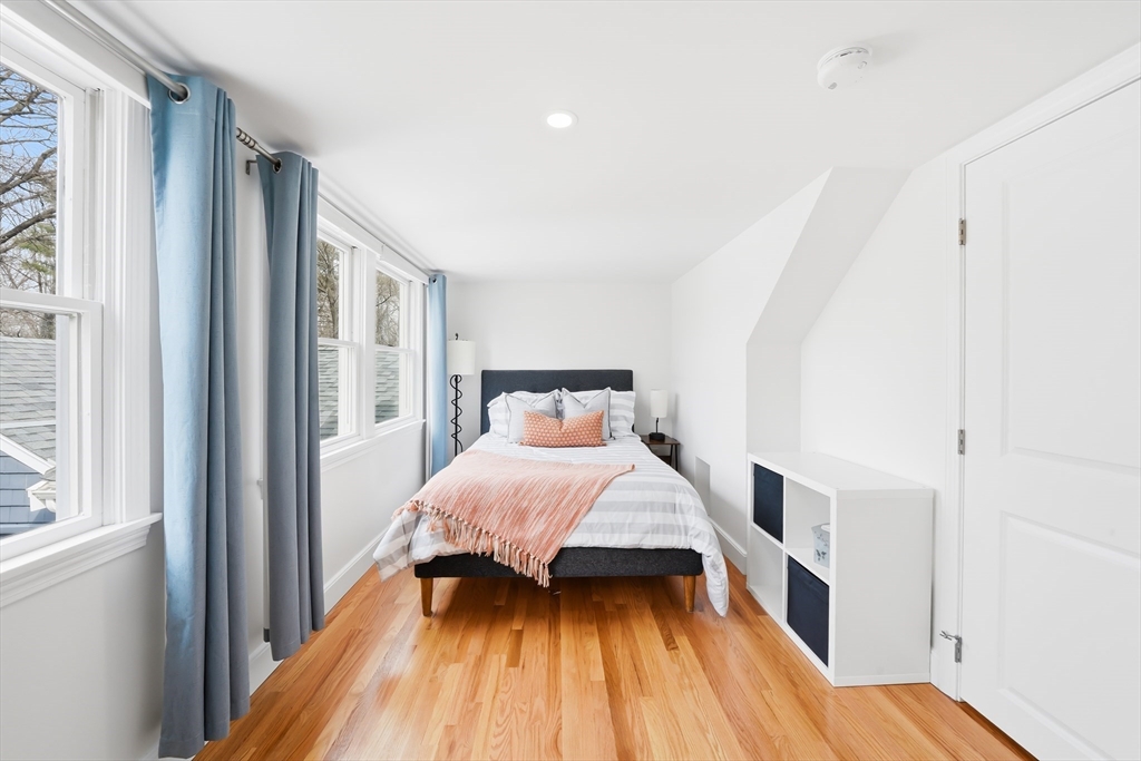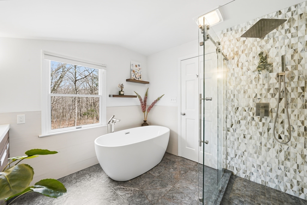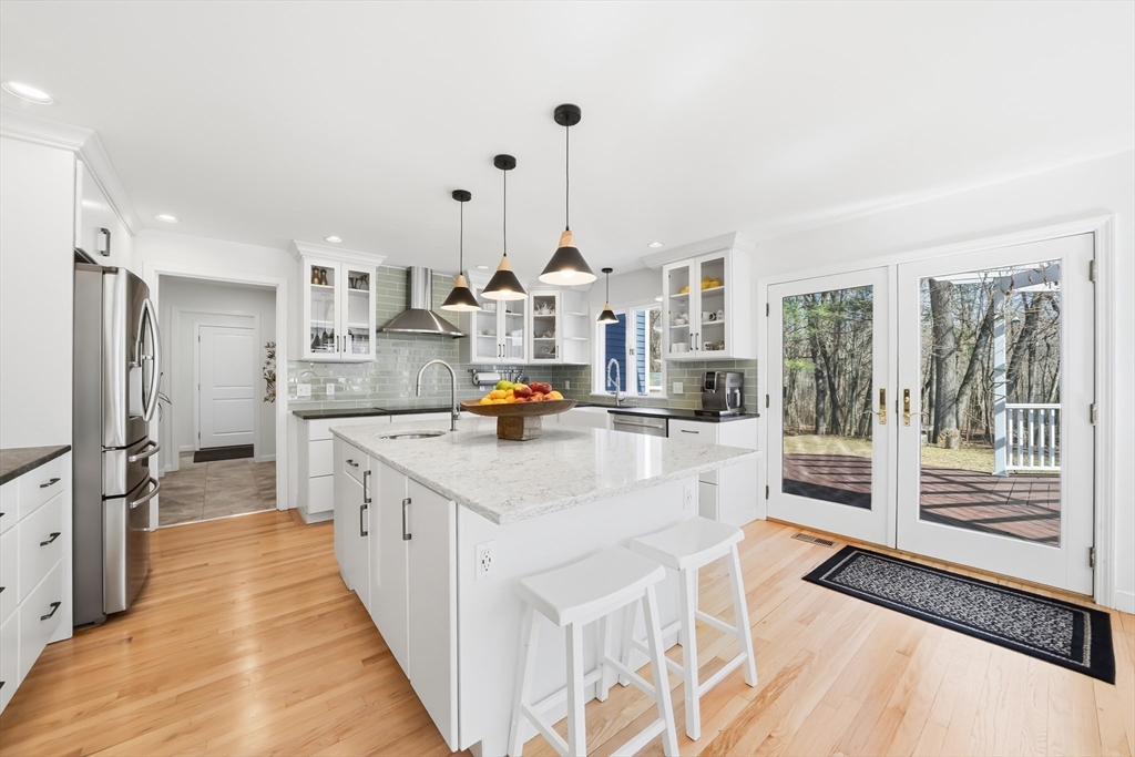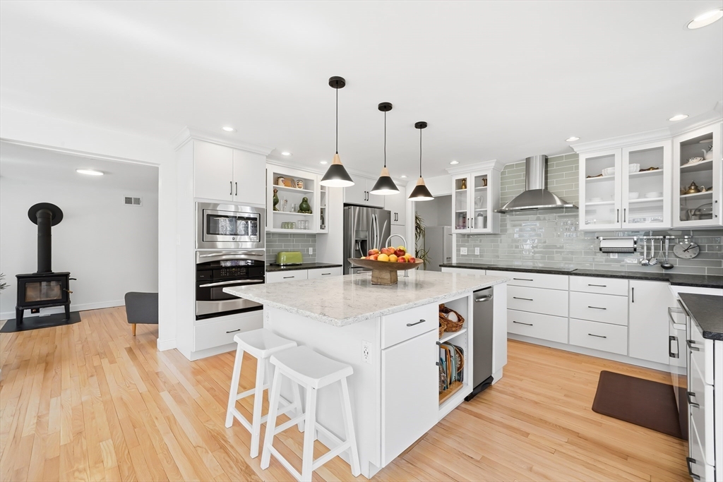 Perfectly set in a desirable neighborhood, this beautifully renovated and expanded Cape offers easy access to Lexington Center, the Minuteman Bike Path, and public transportation. Blending traditional charm with modern design, the home features a thoughtfully updated kitchen with custom Omega cabinetry, a quartz breakfast bar island, and SS appliances, opening to a bright dining area with views of the private backyard. Relax in the living room gathered around the cozy wood stove or enjoy the family room with a fireplace. Upstairs, the spa-like primary suite offers a walk-in closet, dual sink vanity, tiled shower, and soaking tub. All bathrooms are recently renovated bathrooms with high-end German and Italian tile. Enjoy outdoor living on the deck as the pergola stretches above, overlooking the private backyard with a storage shed. The huge mudroom, laundry room, and a versatile main level bedroom complete this move-in ready home close to schools, recreation, the golf course, and more.