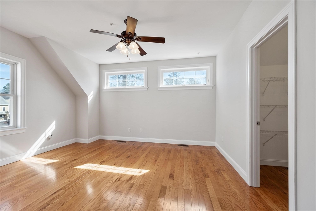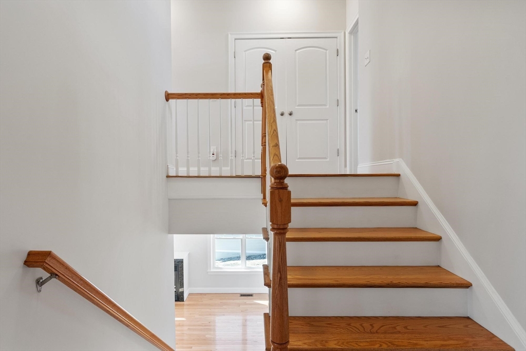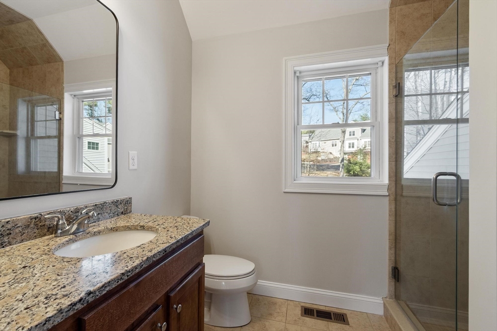 Quiet side street in coveted Graniteville Woods! Sun-drenched south-facing home on a premier elevated lot, generously spaced from neighbors & near Central Park (basketball, volleyball, swings, gazebo, & lawn area). Unique floor plan with signature turn staircase! Gleaming hardwood floors anchor open layout centered around gas fireplace. Kitchen boasts granite counters, wood cabinetry & SS appliances. Primary suite on its own floor with 2 walk-in closets & new hardwood floors (repeated in 2 other bedrooms). Finished basement perfect for office, gym or media room. Composite deck opens to a grassy backyard with a wooded border. Farmers porch, granite steps & stone wall deliver instant curb appeal. Improvements: water heater, interior paint throughout, bathroom mirrors, garage epoxy floor. Less than 1 mile to 2 award-winning public schools! Niche ranked Westford #1 of the 2020 Best School Districts in Massachusetts! OFFERS DUE 04/01/2026 @ 12PM