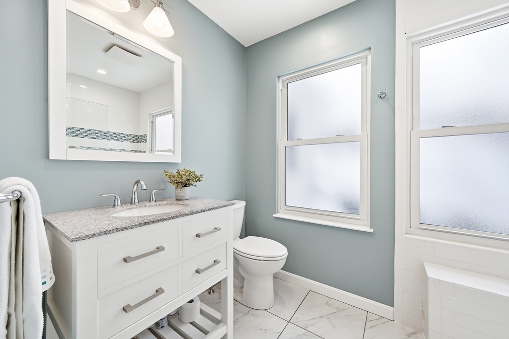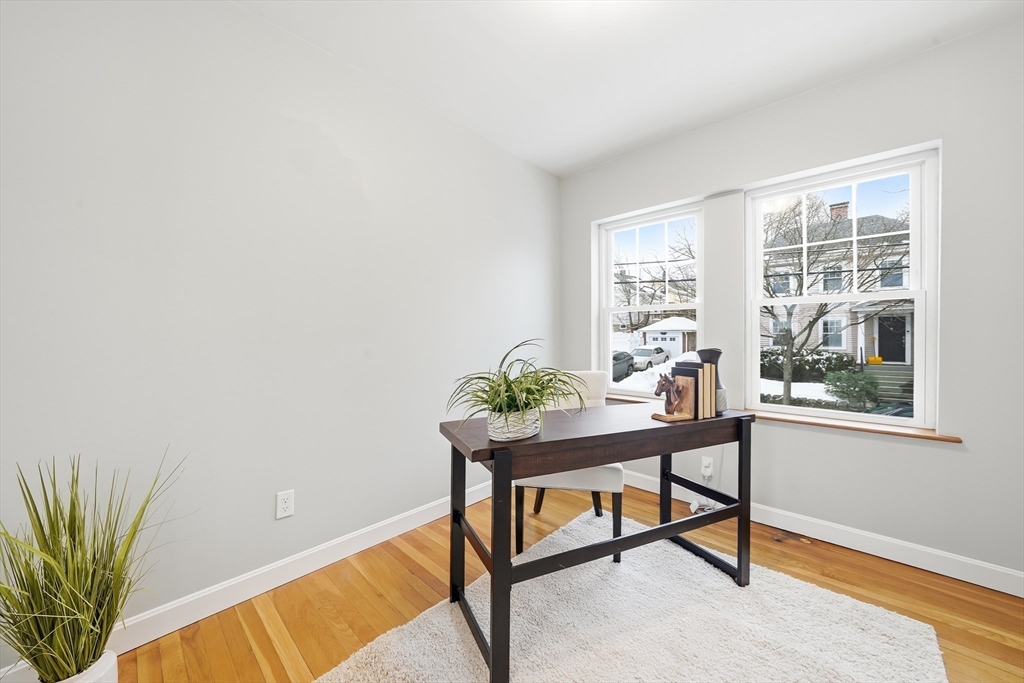This beautifully updated Colonial is ready to welcome you home, with a prime location perfectly set on a quiet street in the desirable Lawrence Estates neighborhood. Gather with family in the sun-filled living room with a fireplace or enjoy special meals in the open concept dining room, as the hardwood floors unify the space. A French door opens to the private office with a bay window and a recently added bathroom full of modern style, featuring a tiled shower. The chef will love the inviting, open concept kitchen with granite countertops, SS appliances, and a breakfast bar island. Step outside to relax on the deck while enjoying the tranquil surroundings in the fully fenced, private backyard with a grassy area and lots of space for gardening. Upstairs, the primary and two more light-filled family bedrooms await, all with hardwood floors and easy access to the updated full bathroom with a tub/shower. Walk to Medford Square, bus stops, shopping, and Middlesex Fells with walking trails
