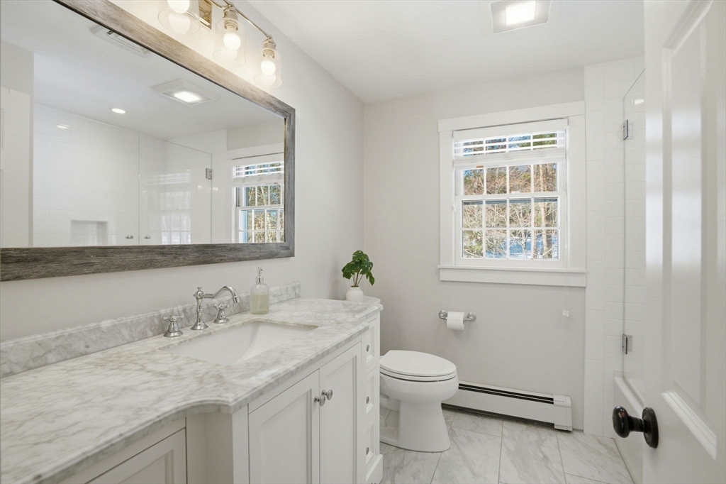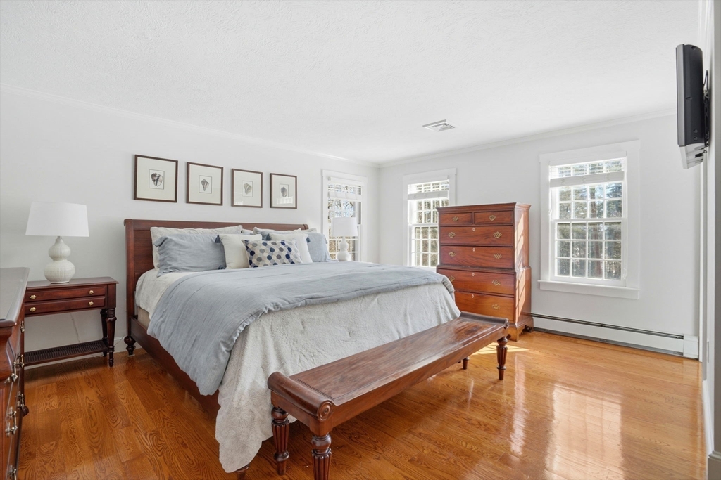 Welcome to 145 Brigantine Circle, a timeless Colonial set in the coveted Barque Hill neighborhood abutting the scenic North River and over 60 acres of open space. Two stately chimneys frame the home’s classic, symmetrical exterior and hint at the warmth within. This four-bedroom residence blends traditional charm with thoughtful modern updates, including two and a half beautifully renovated bathrooms. Designed for both everyday living and entertaining, it features a formal living room, vaulted family room and formal dining room— each with their own fireplace adding warmth and character throughout. The kitchen features custom cabinetry, Wolf & Subzero appliances, a center island and additional bar seating next to the beverage center. The finished lower level provides even more versatility with a media room, home office, and gym area. With a 2 car garage, expansive back yard and paved sports area, this classic New England home offers the perfect balance of timeless style and comfort.