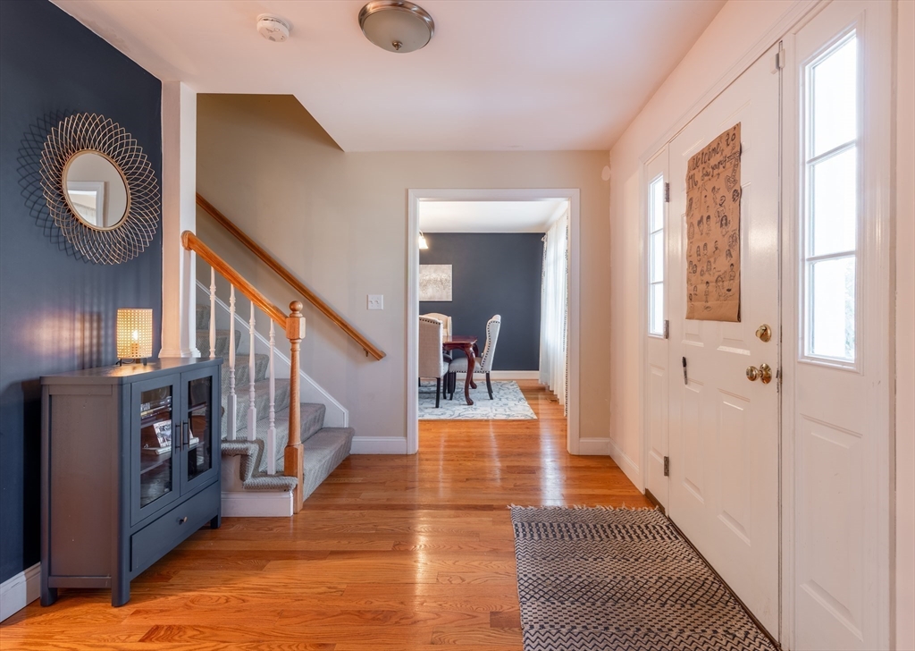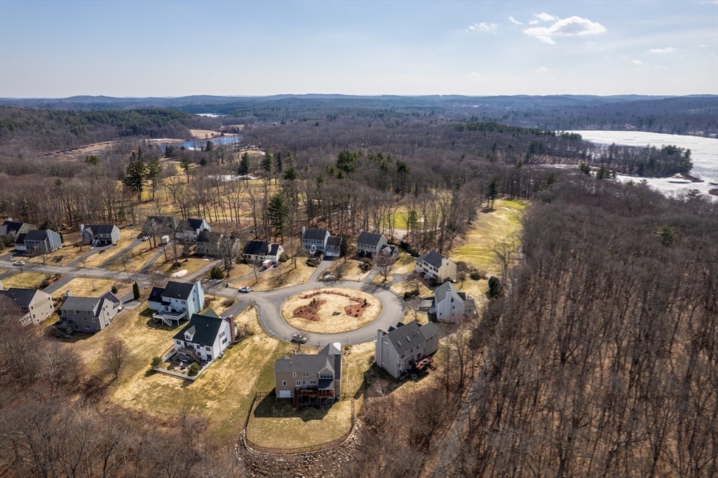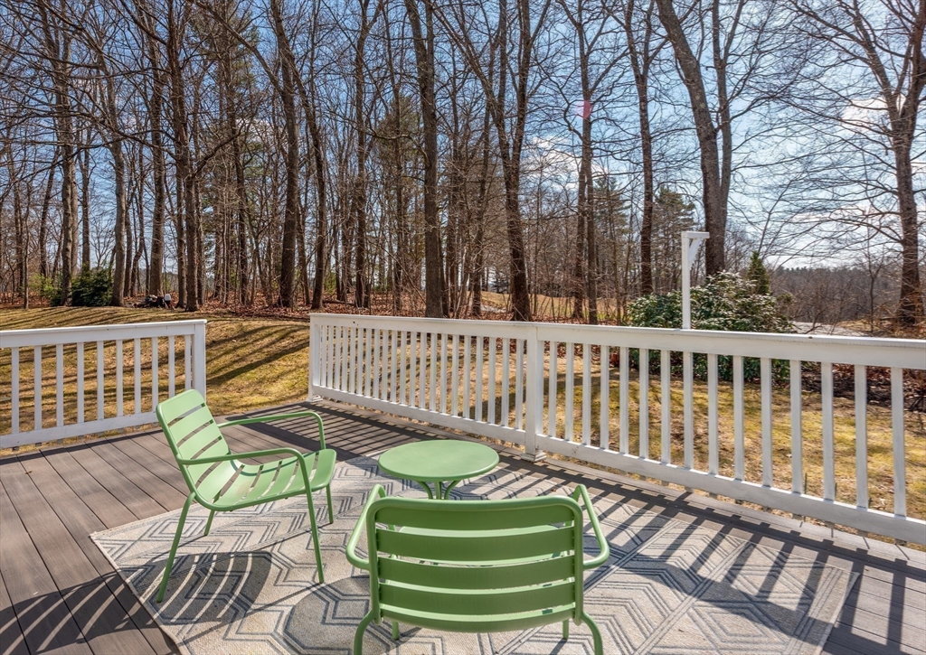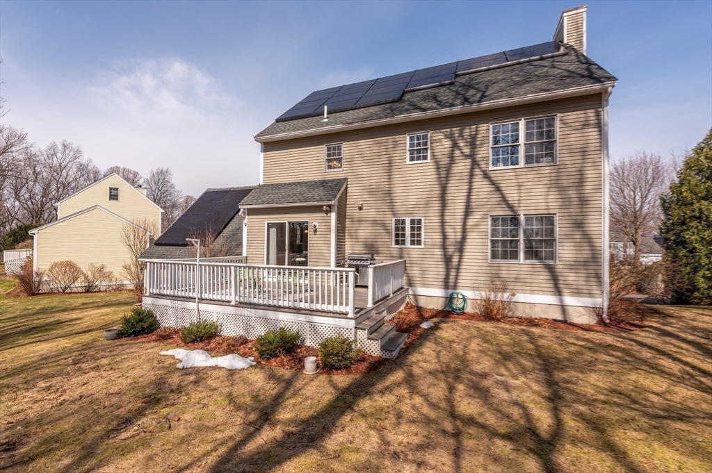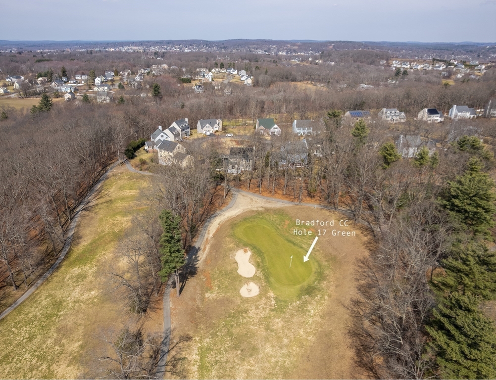 Welcome to this stately 4-bedroom Colonial located in Bradford at Persimmon Woods. Enjoy the serene landscape that beautifully overlooks the 17th hole at Bradford Country Club. This sun-filled home features a renovated eat-in kitchen with white cabinetry, stone countertops, stainless steel appliances, complete with a pot filler! It opens to a spacious deck with stunning golf course views. Flexible main level with home office, formal dining, fireplaced formal living room and expansive skylit family room. Upstairs offers four bedrooms including a primary suite with walk-in closet and en-suite bath. Attached 2-car garage, hardwood floors, and spectacular views make this a rare opportunity in a sought-after neighborhood. Unfinished basement and walk-up attic offering expansion potential.