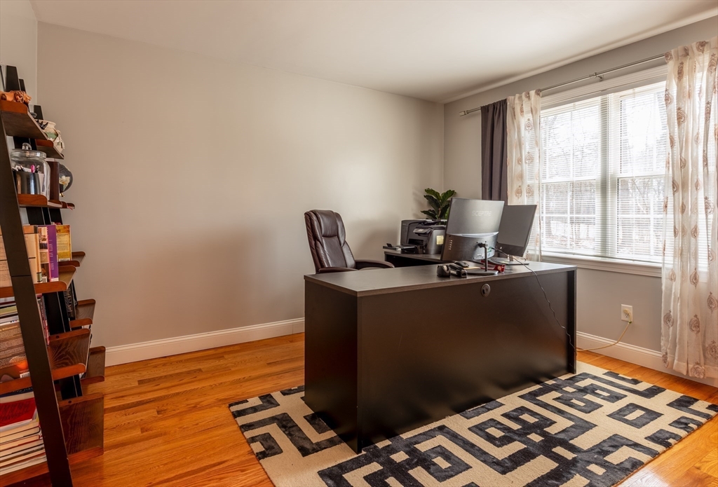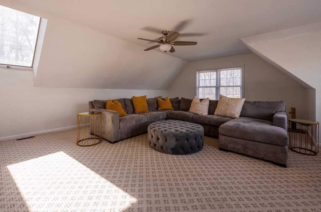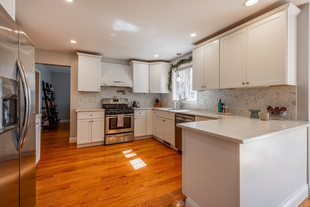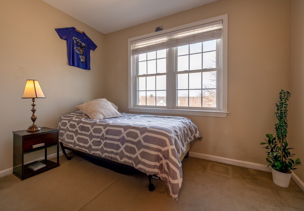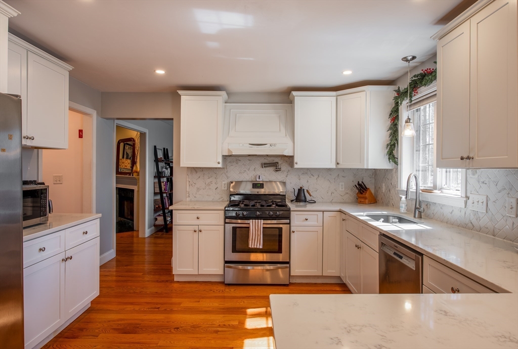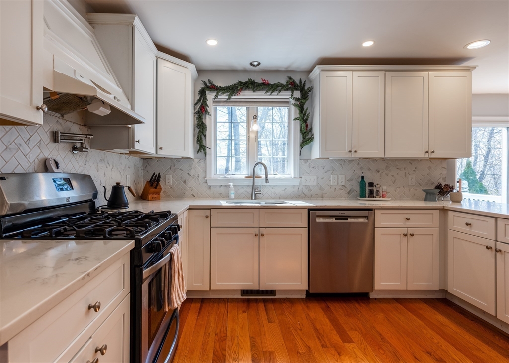 Welcome to this stately 4-bedroom Colonial located in Bradford at Persimmon Woods. Enjoy the serene landscape that beautifully overlooks the 17th hole at Bradford Country Club. This sun-filled home features a renovated eat-in kitchen with white cabinetry, stone countertops, stainless steel appliances, complete with a pot filler! It opens to a spacious deck with stunning golf course views. Flexible main level with home office, formal dining, fireplaced formal living room and expansive skylit family room. Upstairs offers four bedrooms including a primary suite with walk-in closet and en-suite bath. Attached 2-car garage, hardwood floors, and spectacular views make this a rare opportunity in a sought-after neighborhood. Unfinished basement and walk-up attic offering expansion potential.