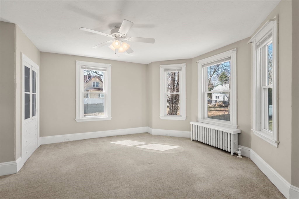 WELCOME to this Well-maintained home offering 3 bedrooms plus 2 additional bedrooms on the third floor, providing excellent flexibility for extended living, office space, or guests. Exterior features include maintenance-free vinyl siding and a welcoming covered front porch that creates an inviting first impression. The partially fenced yard is ideal for pets, play, gardening or outdoor entertainment. A standout bonus is the oversized 2-car garage with electricity and a loft, perfect for storage, a workshop, or future expansion. Located close to the Whitman commuter rail, the home provides effortless access to Boston and surrounding areas, making it a fantastic option for commuters. With generous interior space and a convenient location, this property offers comfort, flexibility, and long-term potential.Some photographs may contain virtual enhancements or staging.