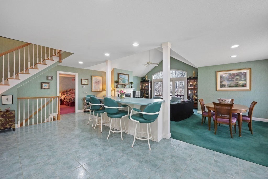 Welcoming end-unit condo features inviting interiors & highly functional open floor plan. The entry welcomes & accesses the front den (could be a bedroom), lovely, tiled powder room & walk-in pantry/laundry closet. The heart of the home is the spacious kitchen w/crisp white cabinetry, tile flooring & generous breakfast bar that overlooks both the dining room & impressive great room w/fabulous views of nature in every direction. Great room showcases a dramatic vaulted ceiling, natural gas fireplace & Pella slider w/flanking stationary panels & half-moon transom that opens to a wood deck. Just behind the dining area sits an enclosed porch- ideal retreat for morning coffee or quiet relaxation. First floor primary suite offers large closet & beautifully tiled full bath w/large tub & walk in shower. Upper level has an ensuite bedroom w/double closet, a loft area & second 3/4 bath. Finished walk-out lower level delivers even more living space w/home office & lounge plus abundant storage.