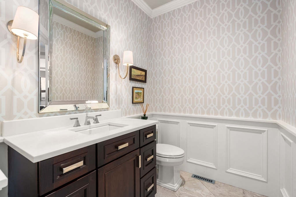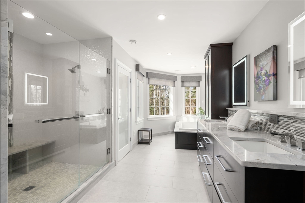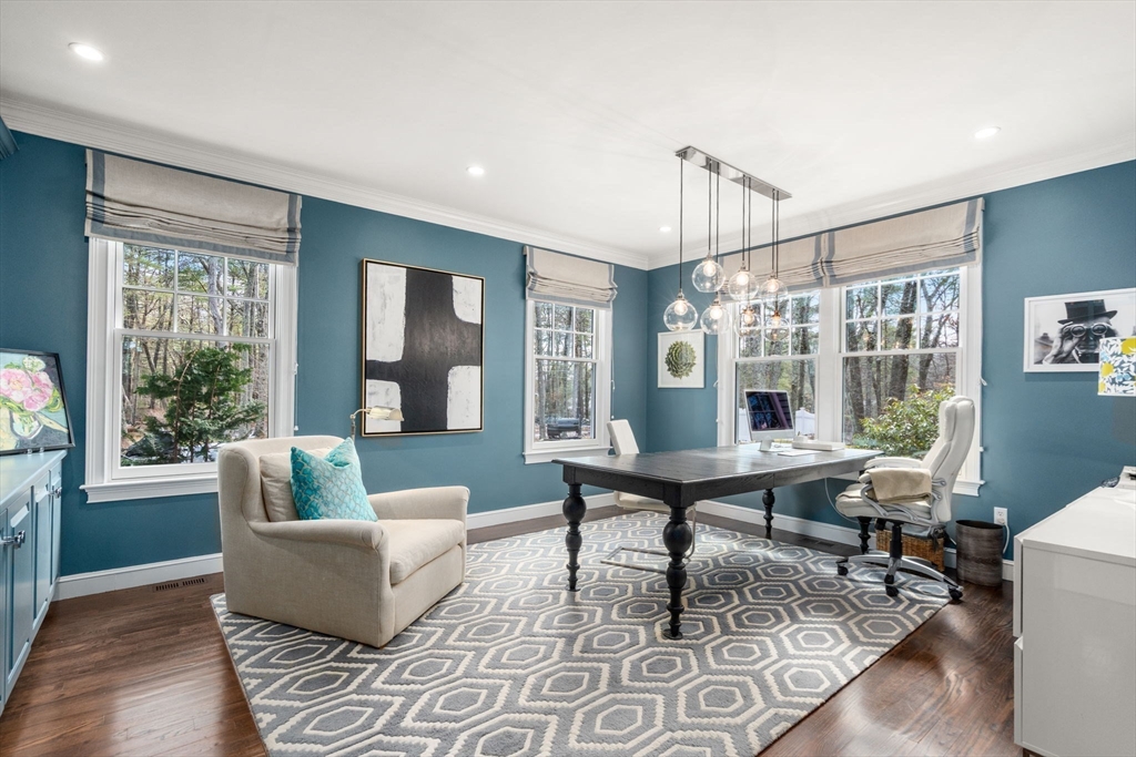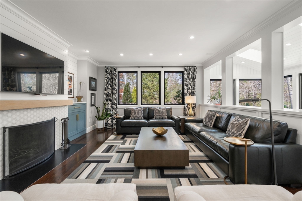This extensively renovated home is a masterpiece of design and functionality, offering a stunning fusion of modern sophistication and elegance. Set well back from the road in an idyllic setting, it provides a sense of peace and privacy that's hard to find. At its heart is the light-filled gourmet kitchen, family room and breakfast nook/sunroom. Combined with five spacious bedrooms, four and a half baths, multiple family and office spaces, a theater, exercise area and more, this home is perfect for living, working, and unwinding. Discover seamless indoor-outdoor living, complete with multiple bluestone patios, stunning professional landscaping and lighting, and the spacious, level backyard. Sherborn, just 20 miles southwest of Boston, is a picturesque town with top-rated schools, Farm Pond, miles of trails, acres of conservation land and open spaces. Come see why Boston.com named Sherborn a top place to buy for 2026 and this exquisite home is at the heart of it all!