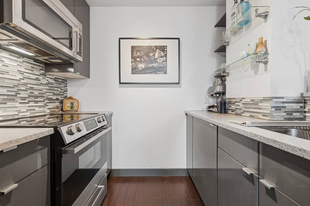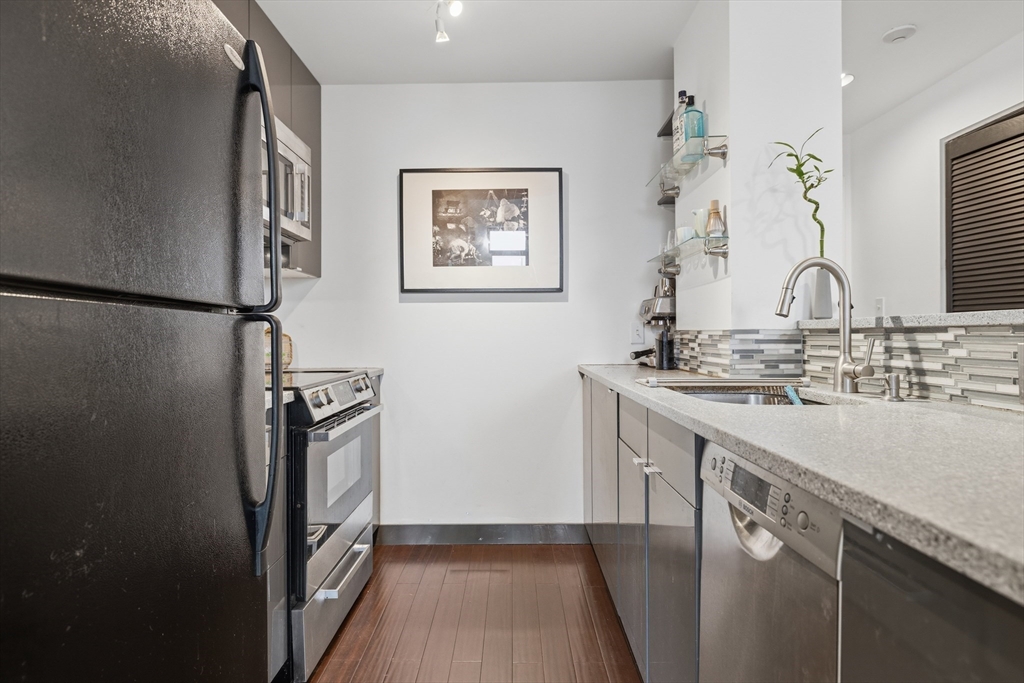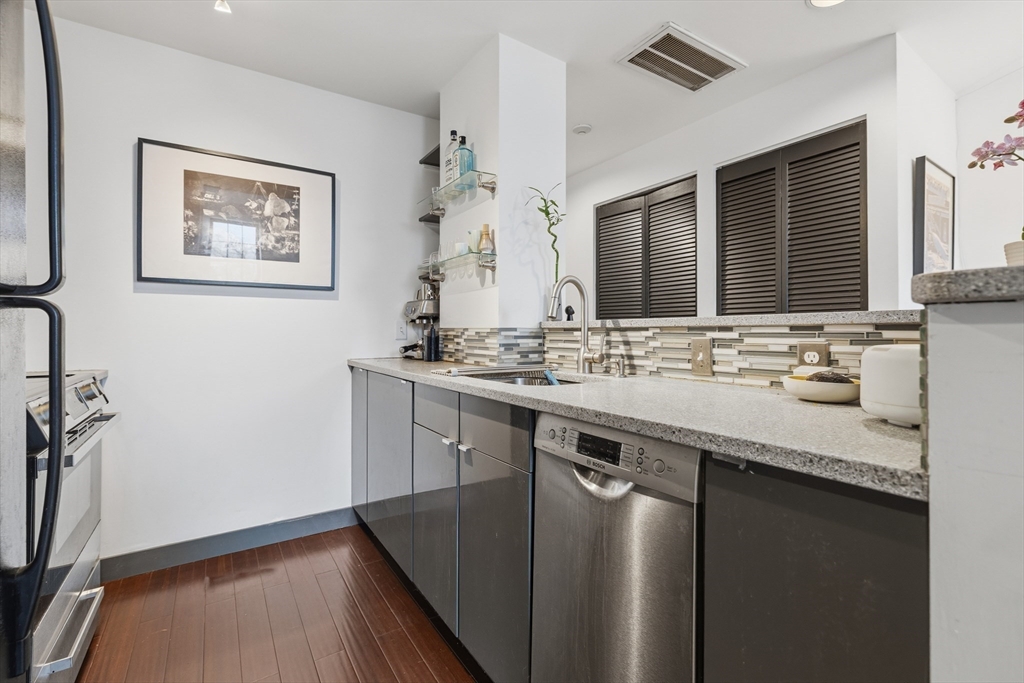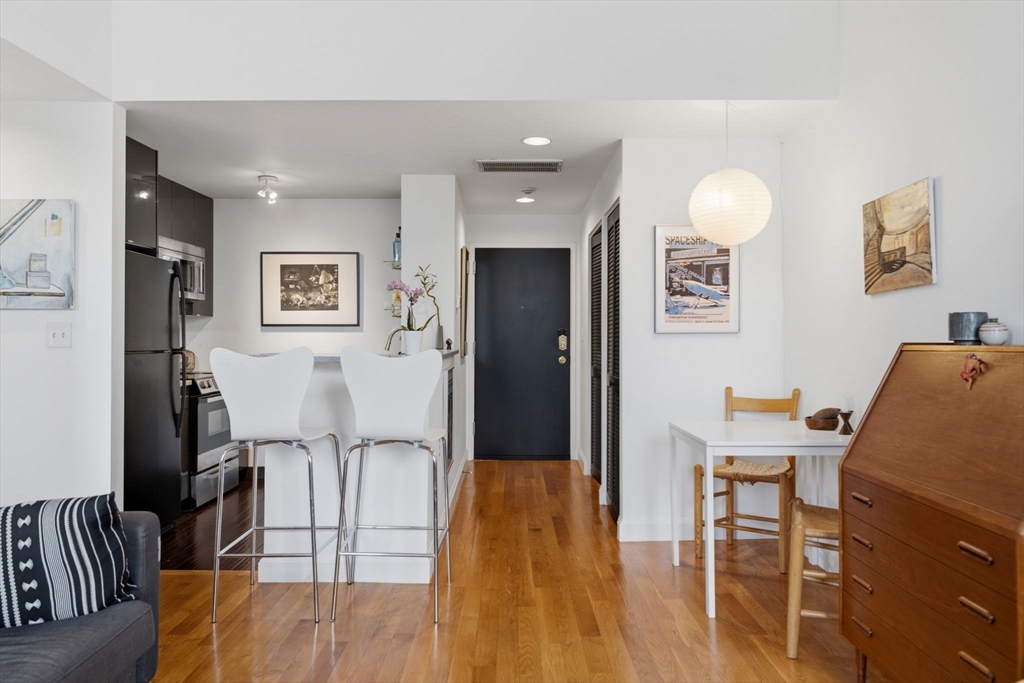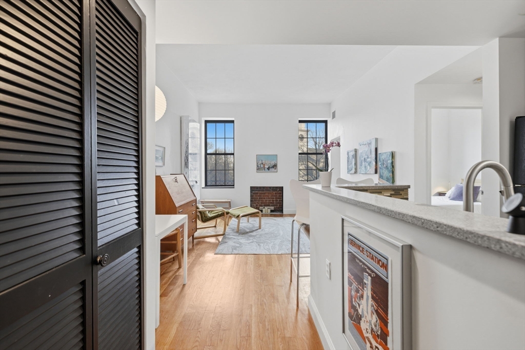 Modern 1-bed, 1-bath condo in the historic Norfolk House, perfectly situated in the vibrant Fort Hill neighborhood. This bright third-floor unit features an open-concept layout with high ceilings, large windows, and hardwood floors throughout, seamlessly extending to a private terrace with amazing views of the city. The stylish kitchen boasts modern stainless steel appliances, a dishwasher, and a breakfast bar overlooking the living room, perfect for entertaining. Enjoy the convenience of central heat/AC, in-unit laundry, and secure access within a professionally managed elevator building that also offers a stunning shared roof deck with panoramic views of the Boston skyline. This incredible location is just steps from Nubian and Roxbury Crossing, Longwood Medical, Northeastern, and BU Med Center, offering modern city living at its finest. || OPEN HOUSE - March 28th 11am - 1pm & March 29th 12pm - 2pm || OFFER DEALINE - March 31st @ 5pm