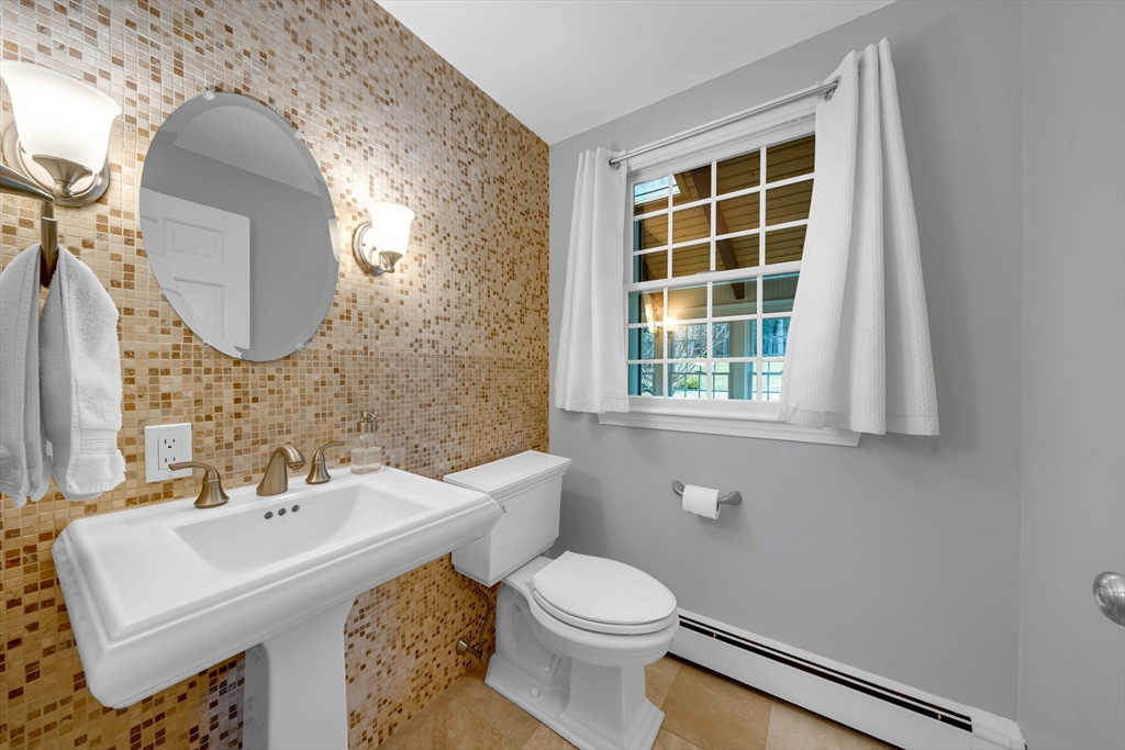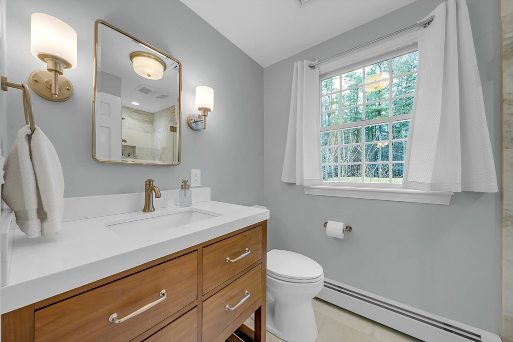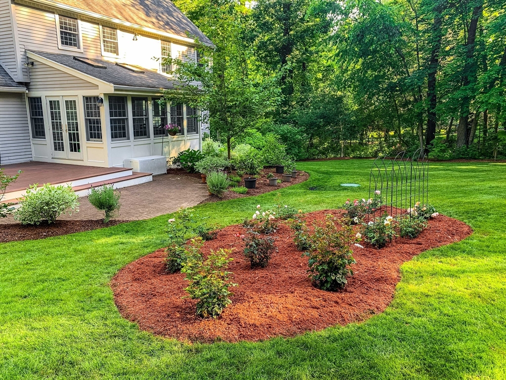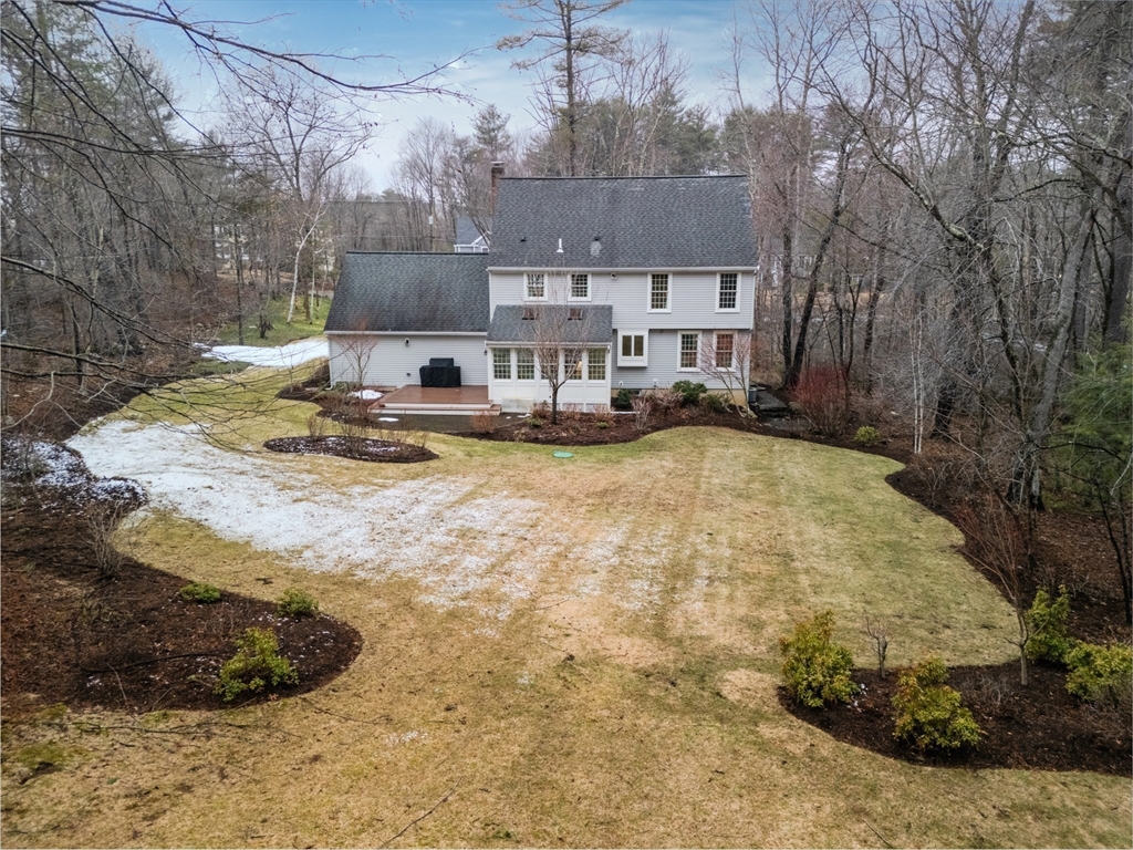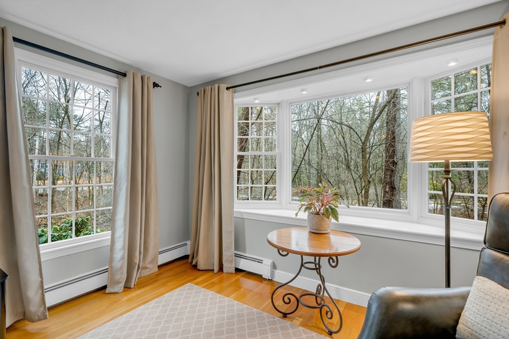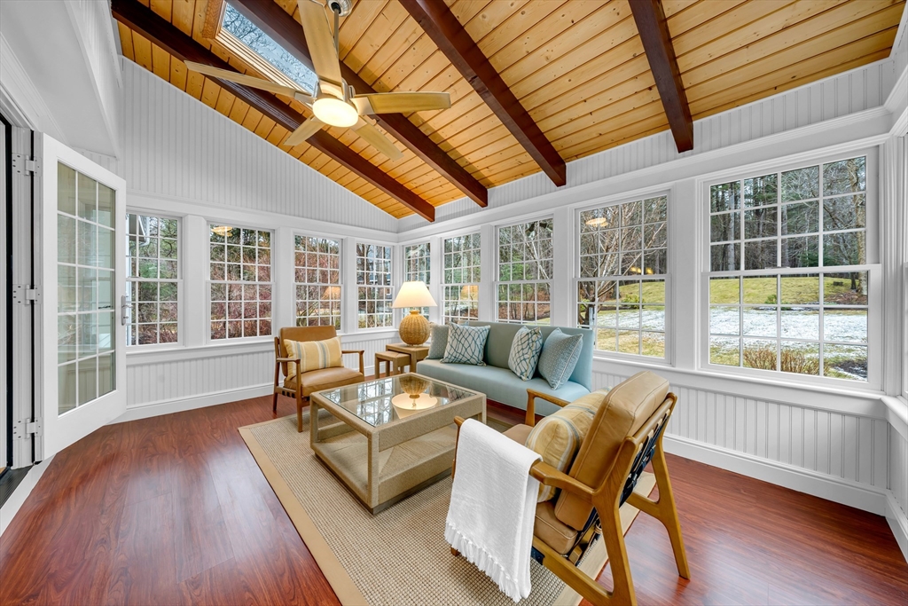 STUNNINGLY UPDATED COLONIAL SET ON A PRIVATE, WOODED ACRE WITH MODERN LUXURY! This well-maintained 4-bedroom, 2.5-bath home offers over 2,100 SF of meticulously maintained living space, blending classic charm with tasteful updates. The sun-filled main level features hardwood floors, a fireplaced family room, dining room with wainscoting, and a bright kitchen. A skylit 4-season porch adds year-round enjoyment and provides access to the deck and patio. Upstairs, generously sized bedrooms include a primary suite with renovated spa-like baths (2025). Ample storage throughout, including a decked attic. Additional updates include a new heating system (March 2026), Andersen 400 windows, siding, Trex deck, 200-amp service, and EV charger. Set on a 1.09-acre lot with a 2-car garage and ample parking. Conveniently located near top-rated schools, parks, shopping, and commuter routes. DON’T MISS THIS EXCEPTIONAL OPPORTUNITY TO OWN A MOVE-IN READY HOME IN A HIGHLY DESIRABLE LOCATION!
