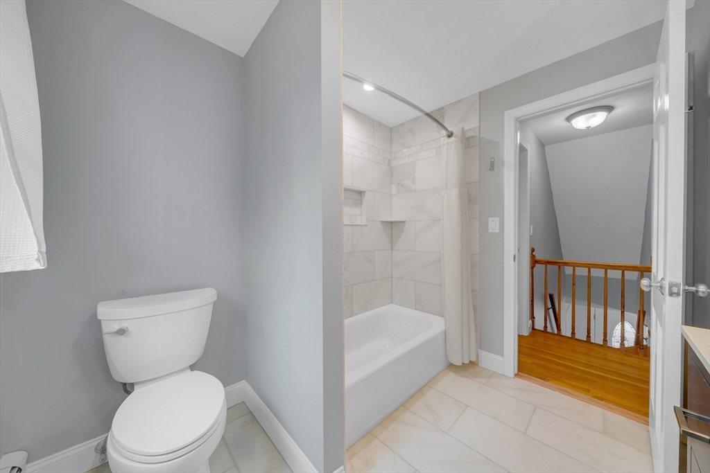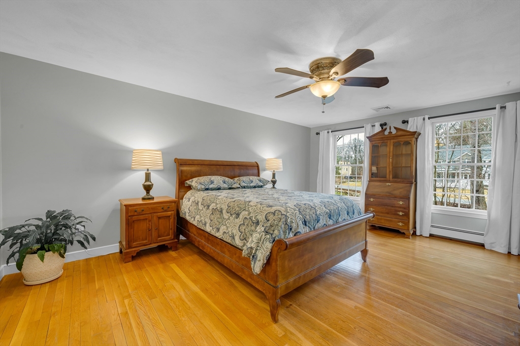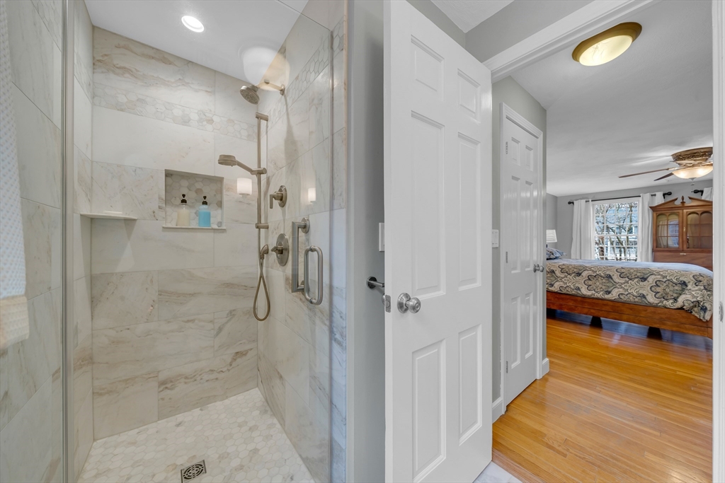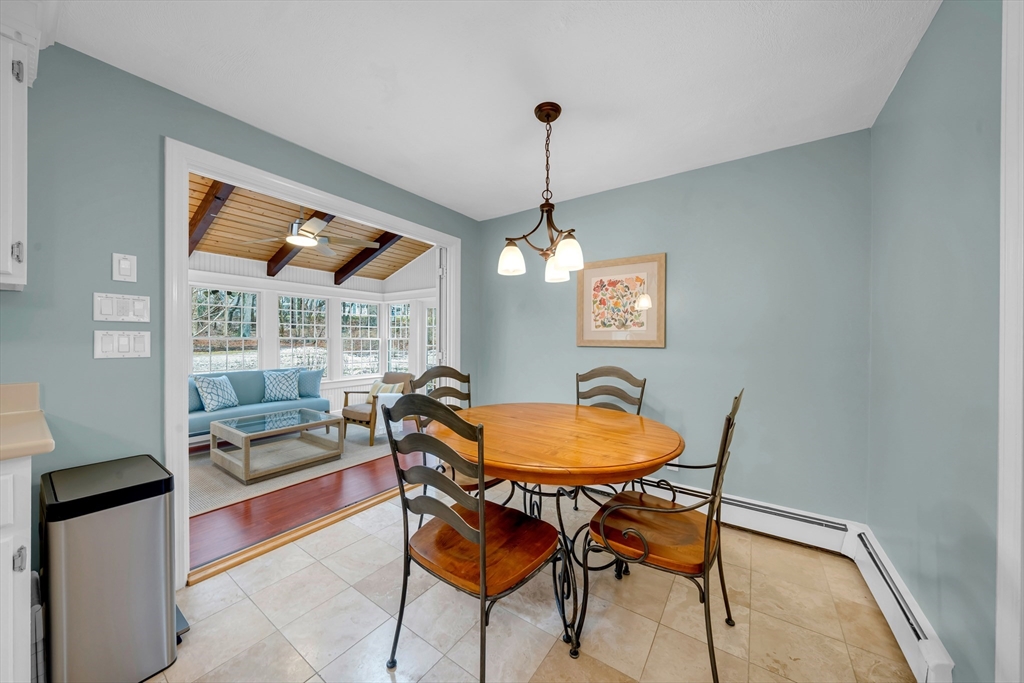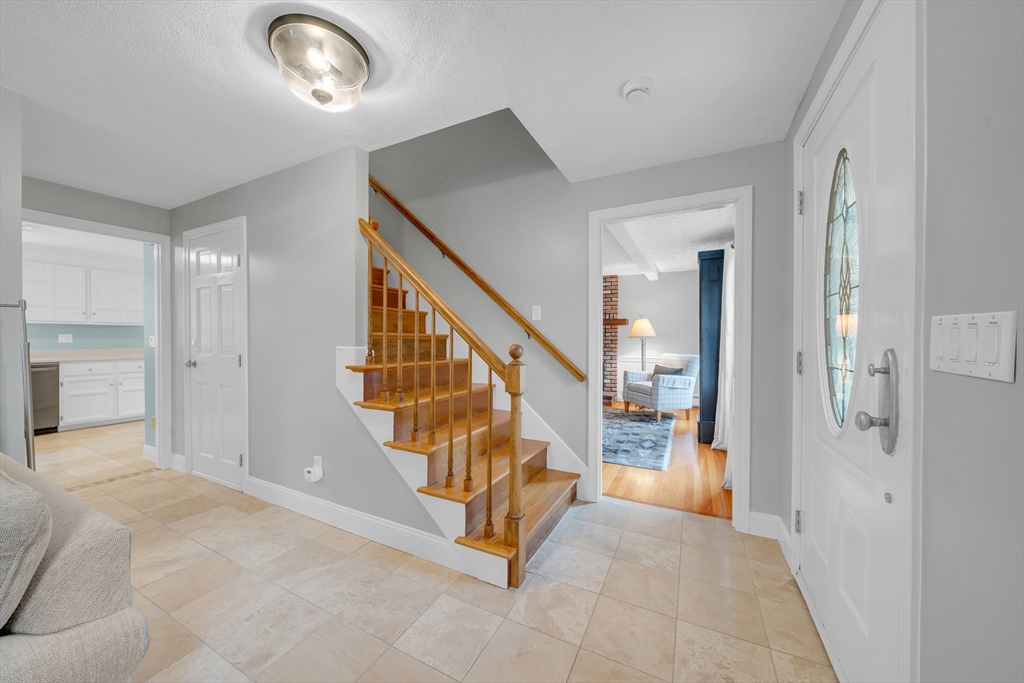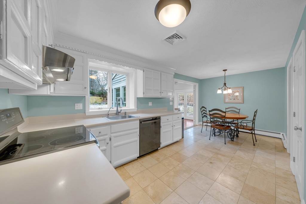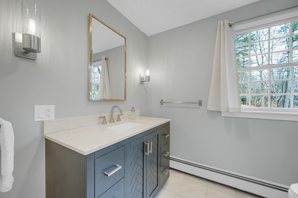 STUNNINGLY UPDATED COLONIAL SET ON A PRIVATE, WOODED ACRE WITH MODERN LUXURY! This well-maintained 4-bedroom, 2.5-bath home offers over 2,100 SF of meticulously maintained living space, blending classic charm with tasteful updates. The sun-filled main level features hardwood floors, a fireplaced family room, dining room with wainscoting, and a bright kitchen. A skylit 4-season porch adds year-round enjoyment and provides access to the deck and patio. Upstairs, generously sized bedrooms include a primary suite with renovated spa-like baths (2025). Ample storage throughout, including a decked attic. Additional updates include a new heating system (March 2026), Andersen 400 windows, siding, Trex deck, 200-amp service, and EV charger. Set on a 1.09-acre lot with a 2-car garage and ample parking. Conveniently located near top-rated schools, parks, shopping, and commuter routes. DON’T MISS THIS EXCEPTIONAL OPPORTUNITY TO OWN A MOVE-IN READY HOME IN A HIGHLY DESIRABLE LOCATION!