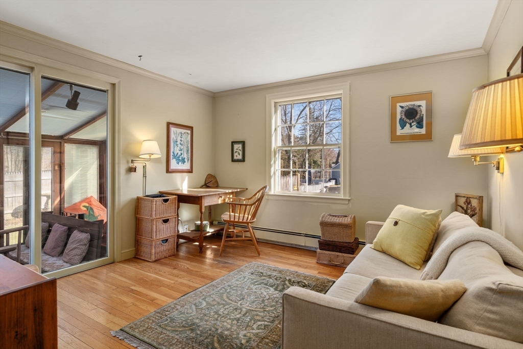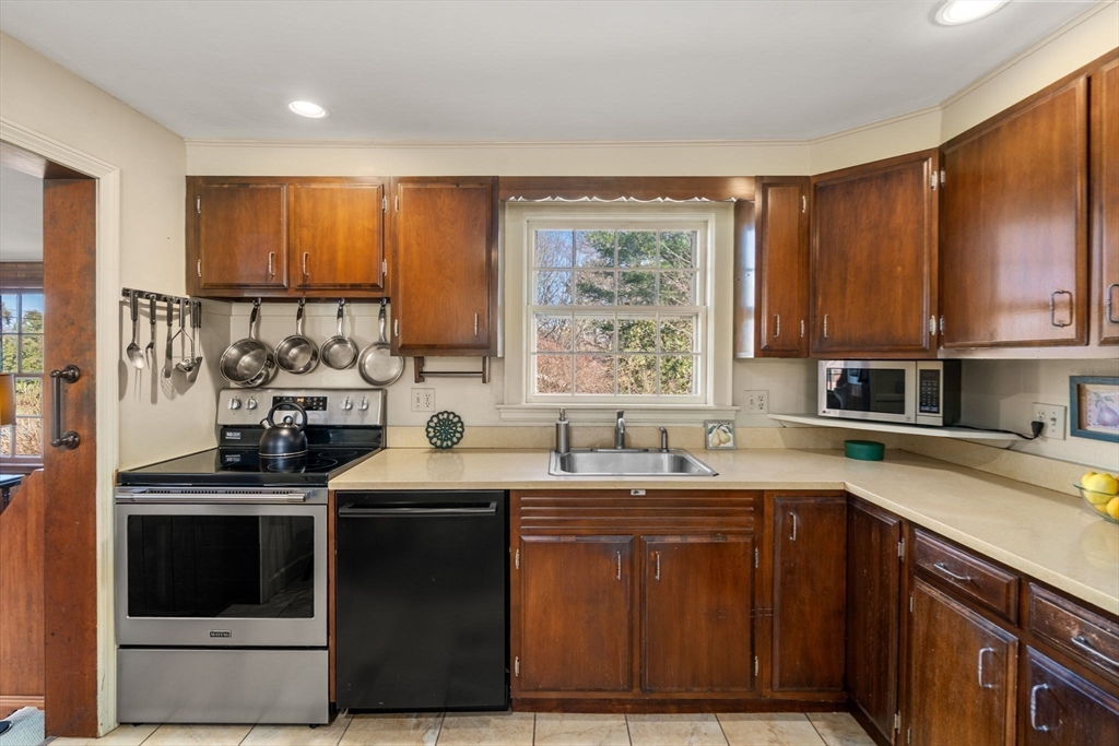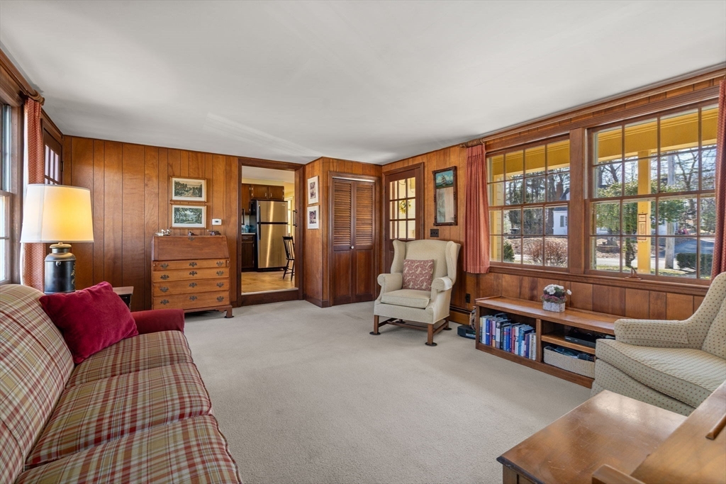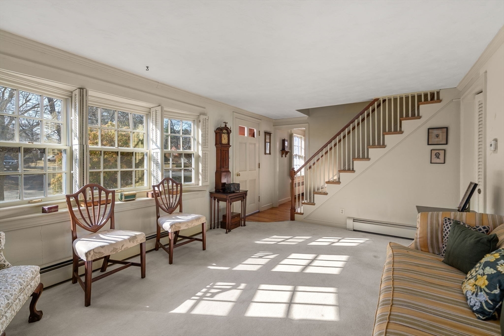 Location, Location! This totally charming traditional NE center entrance half dormered Cape is in a sought-after neighborhood in North Framingham. The 3 bedrooms, 2 full bath home has a wonderful first floor family room off the Kitchen. The formal Livingroom has hardwood floors under ivory carpeting, wood burning fireplace, side light windows and a double-glazed bay window allowing in much natural light. There is a lovely dining room with a pass thru to a nice size eat-in kitchen with wood cabinets, tile floors and Stainless-Steel appliances. The first floor has a 3rd bedroom with a slider to a lovely Pella Sunroom w/ circular stair down to the semi-finished basement, The second floor has the Primary bedroom with newly refinished floors and a 2nd bedroom with hardwood flrs under w-w plus a full bath. The full Basement & garage have great future expansion & storage. Super commuter location! Short distance to Rt 9's Whole Foods, Starbucks,Trader Joe's & Dunkin's.*This is your new home!*