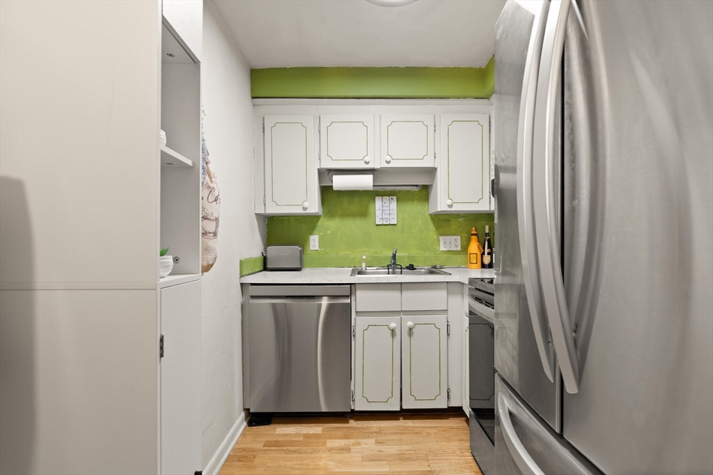 Charming and affordable garden-level studio at Royal Crest Randolph. This bright unit features a spacious living/sleeping area with a large picture window, a separate kitchen with brand-new appliances, and an updated bath with a new Bath Fitter tub and enclosure. Common laundry is located on the same floor, and residents enjoy access to the community inground pool. Convenient location with an MBTA bus stop at the front of the complex and quick access to Routes 128, 24, 93, and 95. Close to restaurants, houses of worship, and everyday conveniences. Professionally managed community. Rentals are not permitted; owners may have one cat (no dogs). Includes one assigned parking space plus guest parking. Seller will pay all assessments in full at closing. A smart and affordable alternative to renting.