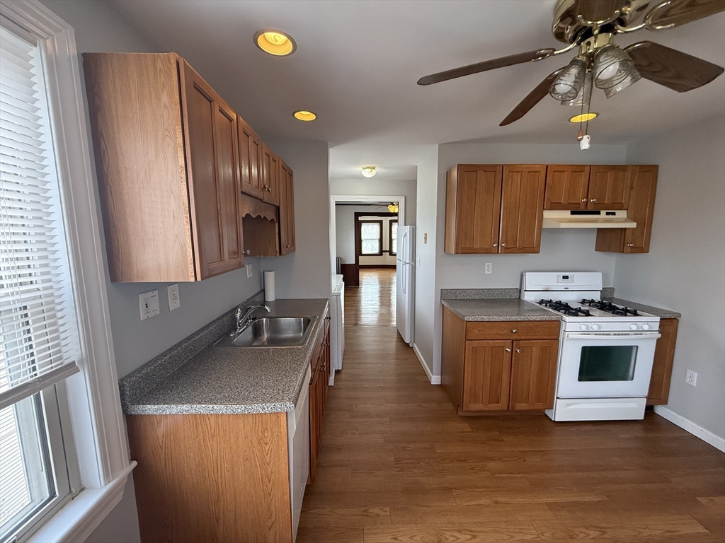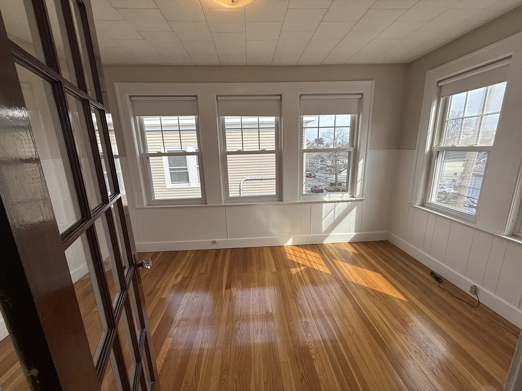 Available now! Bright & sunny top floor apartment in the sought after Oak Square neighborhood. Close to all public transportation, shops and restaurants, this unit has so much to offer. Two spacious bedrooms are included, and one additional heated room perfect for an office, third bedroom or flex room. Gleaming hardwood floors, updated kitchen cabinets and appliances with in unit laundry. Do not miss this opportunity to get into a move in, meticulous apartment. Tenants pay gas & electricity. Landlord pays water/sewer.