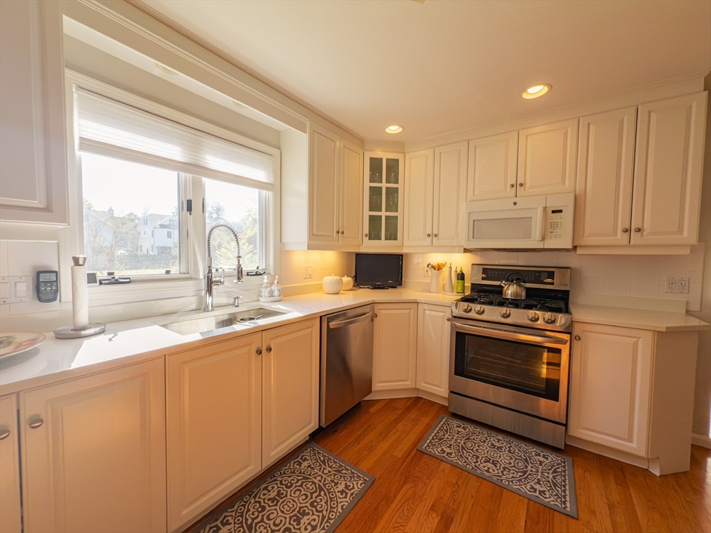FURNISHED!!! Meticulously maintained and renovated townhome available for rent in highly sought-after Newtonville. The main level offers an ideal layout with a formal living room off the entry, a beautiful dining room with crown molding & an updated eat-in kitchen featuring quartz countertops, gas cooking & solid wood cabinetry. A spacious family room showcases skylights, a glass sliding door, & a stunning brick wood-burning fireplace, along with a half bath & laundry room. Multiple sliding doors open to an fully fenced, professionally landscaped backyard with irrigation. Upstairs offers 3 bedrooms, including a primary suite with en-suite bath & two closets—one a walk-in. Gleaming hardwood floors throughout. Finished lower level includes a bonus room perfect for an office or gym & a FINLANDIA SUANA. One garage space plus driveway parking. Available 8/5/2026