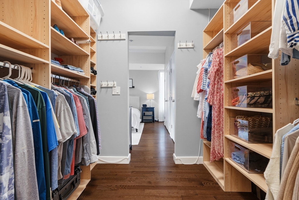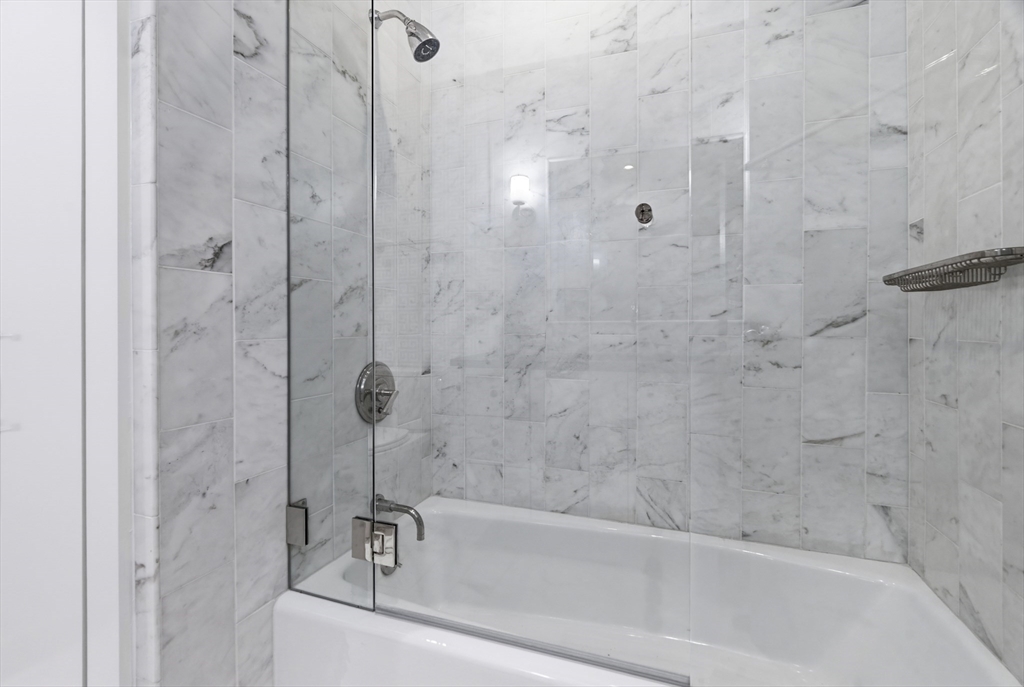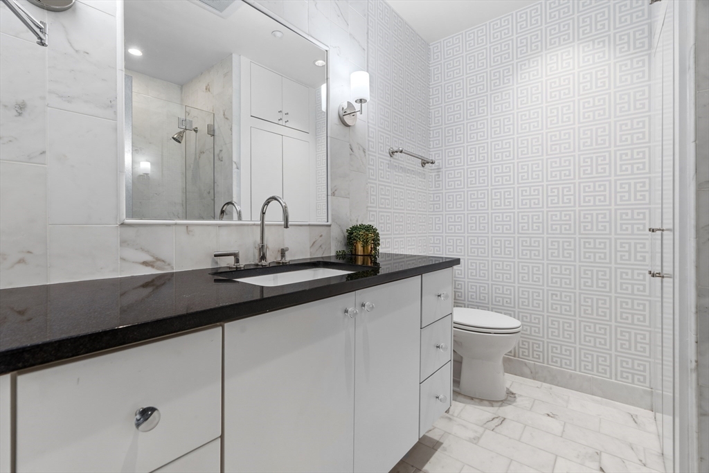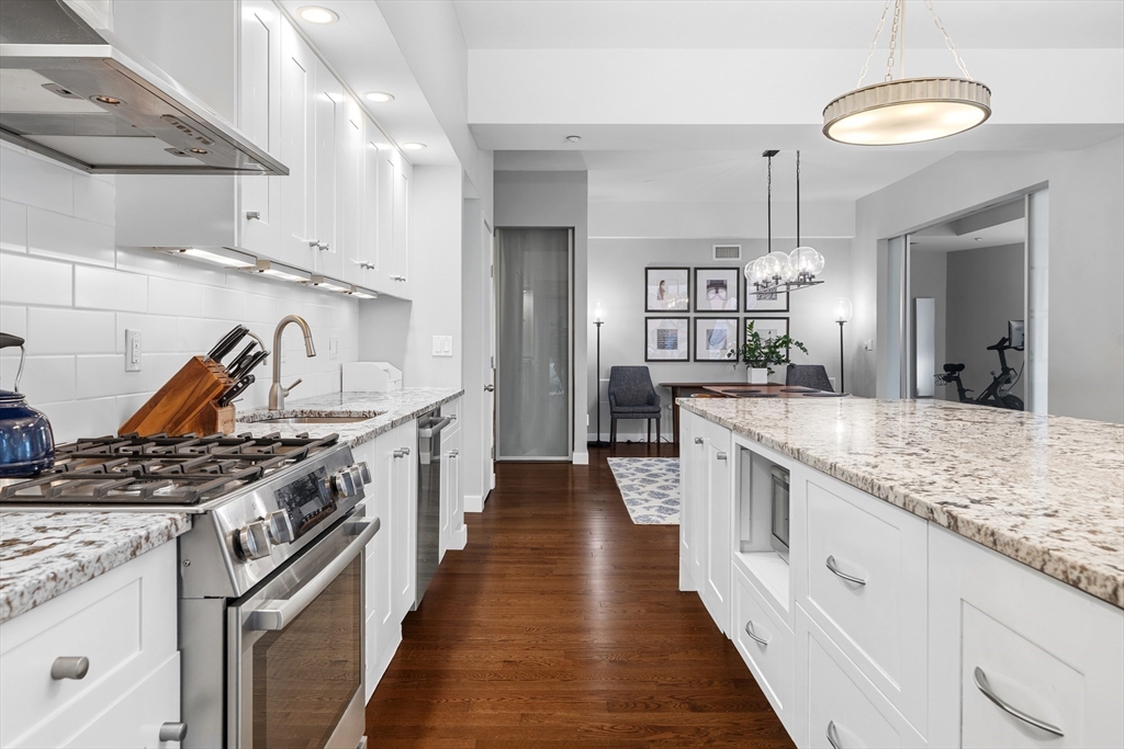 Rarely available southeast-facing corner residence at Wilkes Passage. This expansive 3BD/2BA home is defined by two walls of oversized windows showcasing treetop and Peter’s Park views, filling the open living/dining areas with natural light. Elegant coffered ceilings and hardwood floors enhance the generous living space. The renovated kitchen features stainless appliances, custom cabinetry, dual pantries, and a striking 10’ granite island, with an adjacent dining area suited for large gatherings. The sunlit primary suite offers ample closets, dressing area, and a tiled bath with walk-in shower. A flexible floor plan includes 2 additional bedrooms with custom glass panel doors and large closets, and the guest bath features Carrera marble and in unit laundry. Central AC plus one full garage parking space is included. Residents enjoy 24/7 concierge, a landscaped courtyard and spectacular roof deck with unsurpassed city views, in one of the South End’s most iconic full service buildings.